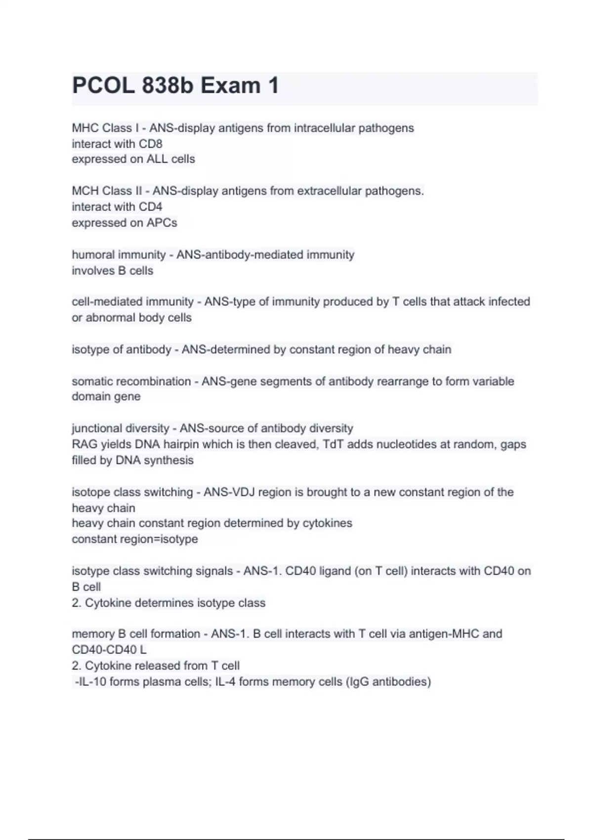 MCH Class II - ANS-display antigens from extracellular pathogens.