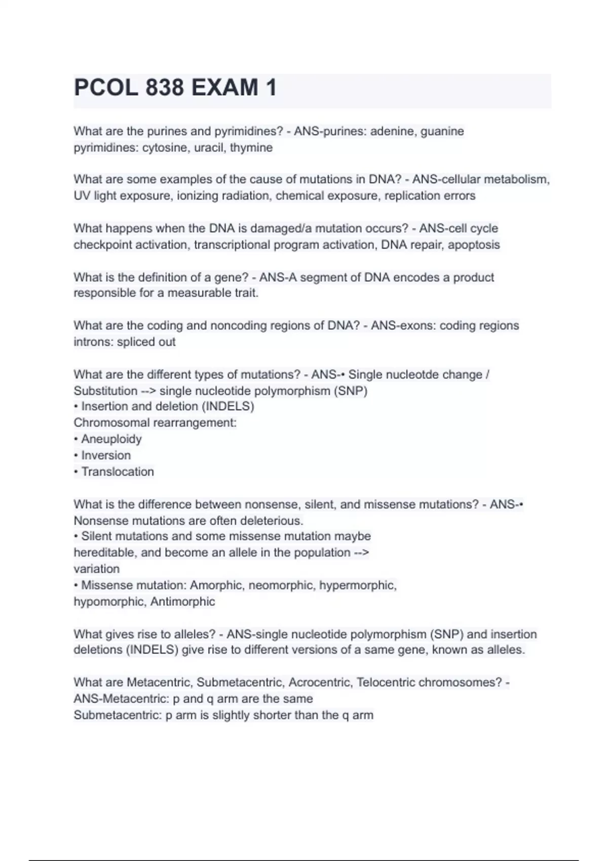 What are the different types of mutations? - ANS-• Single nucleotde change /
