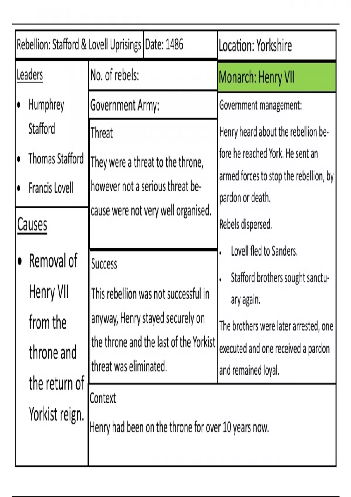 Rebellion: Stafford & Lovell Uprisings Date: 1486 Location: Yorkshire