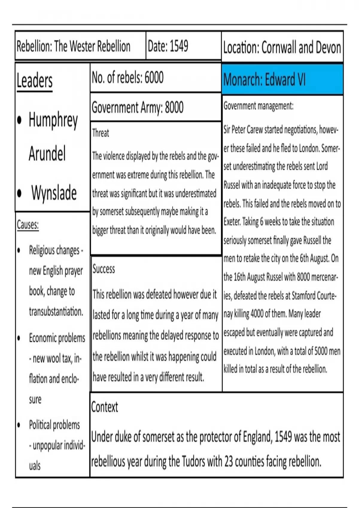 Rebellion: The Wester Rebellion Date: 1549 Location: Cornwall and Devon