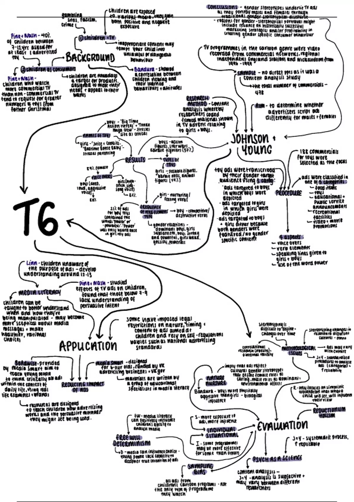 Detailed mindmap with evaluation, debates, background and key study of T6