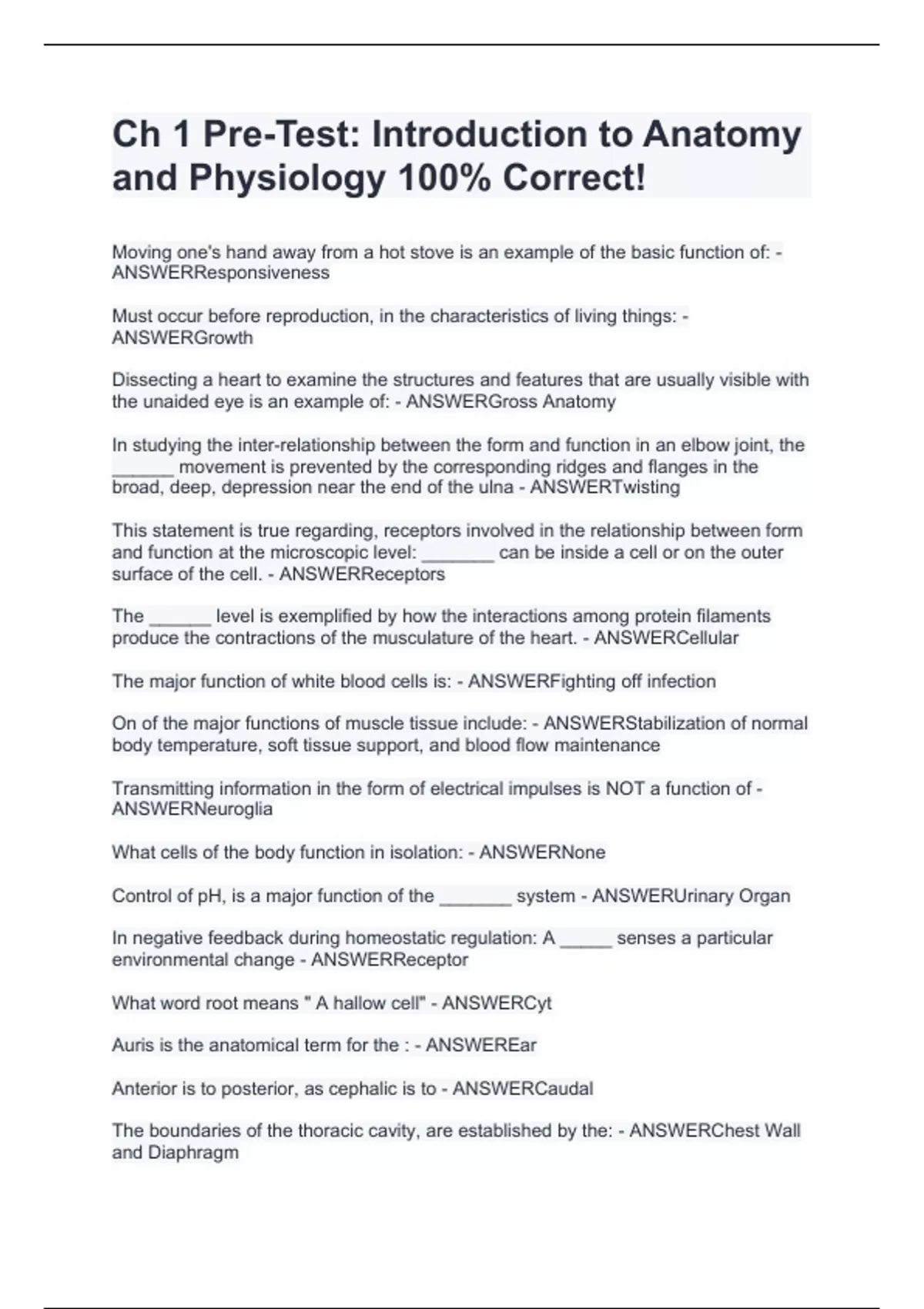 Ch 1 Pre-Test: Introduction to Anatomy and Physiology 100% Correct!