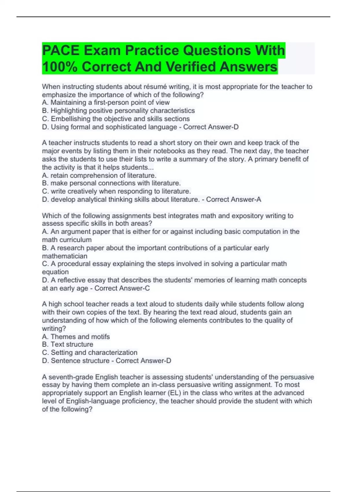 PACE Exam Practice Questions With 100% Correct And Verified Answers