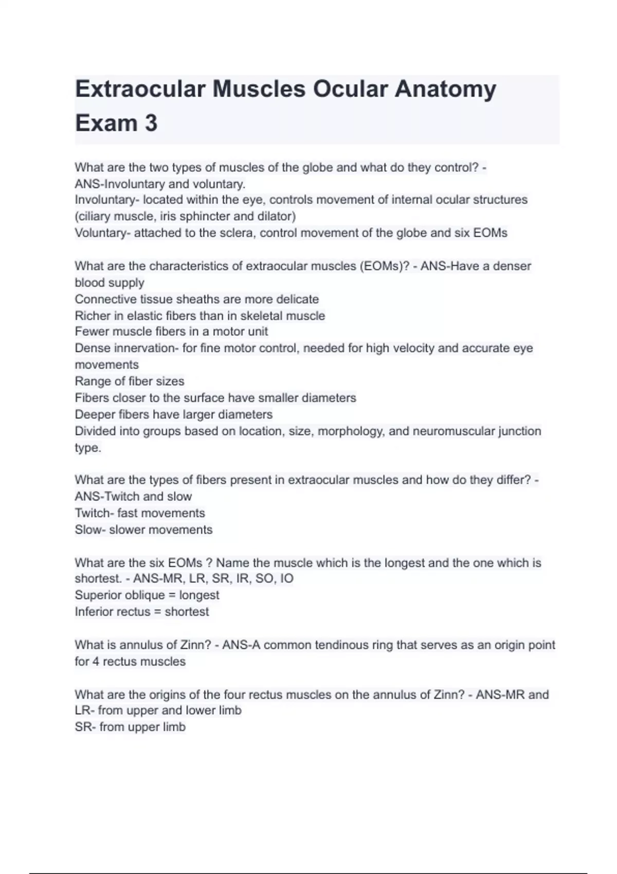 Extraocular Muscles Ocular Anatomy