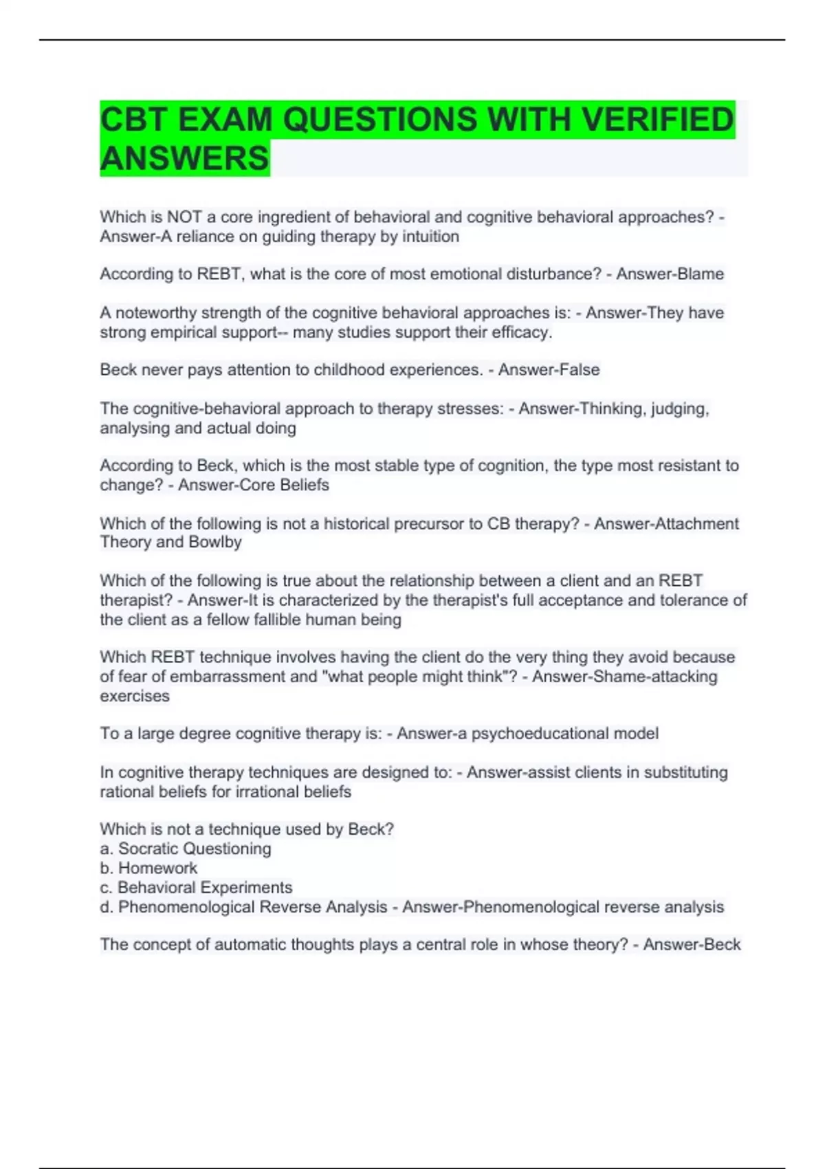 Which of the following is not a historical precursor to CB therapy? - Answer-Attachment
