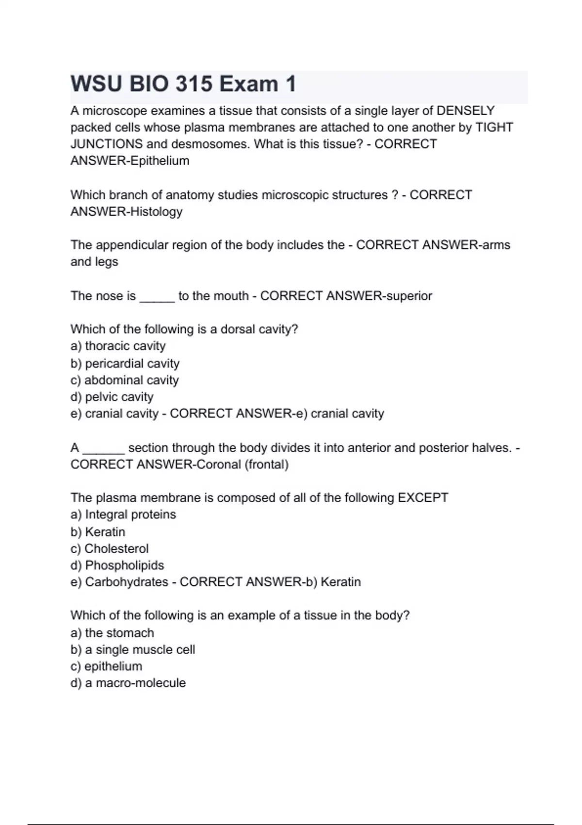 WSU BIO 315 Exam 1