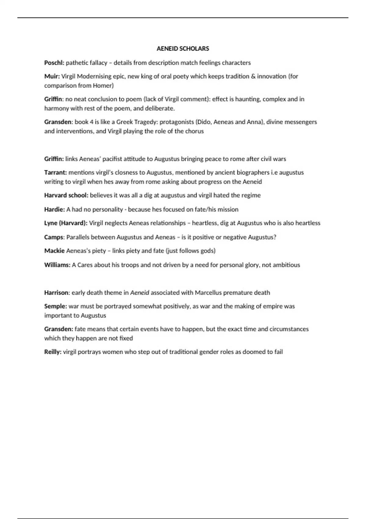 Summary OCR Classical Civilisation A Level: Scholars on The Aeneid