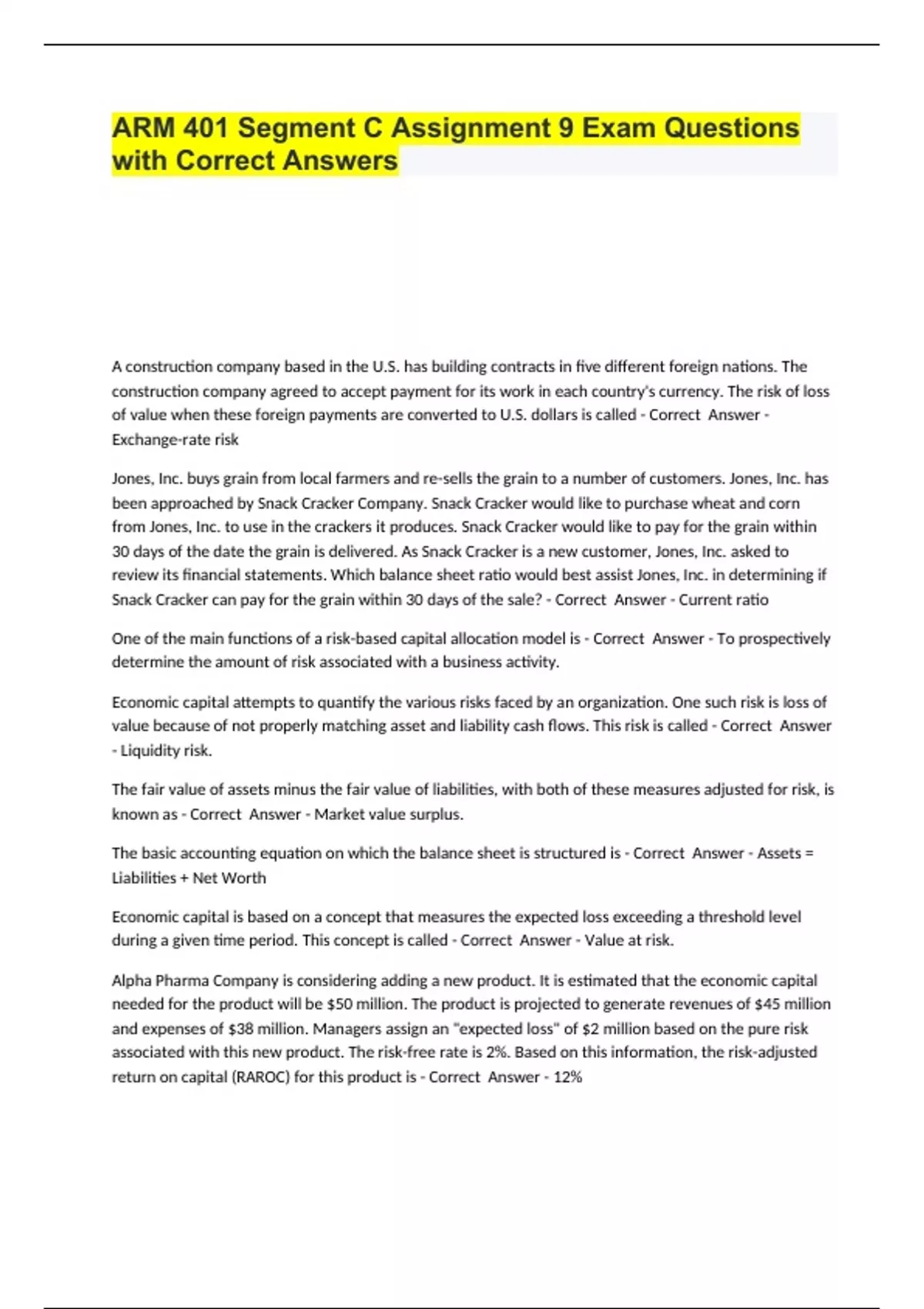 ARM 401 Segment C Assignment 9 Exam Questions with Correct Answers.