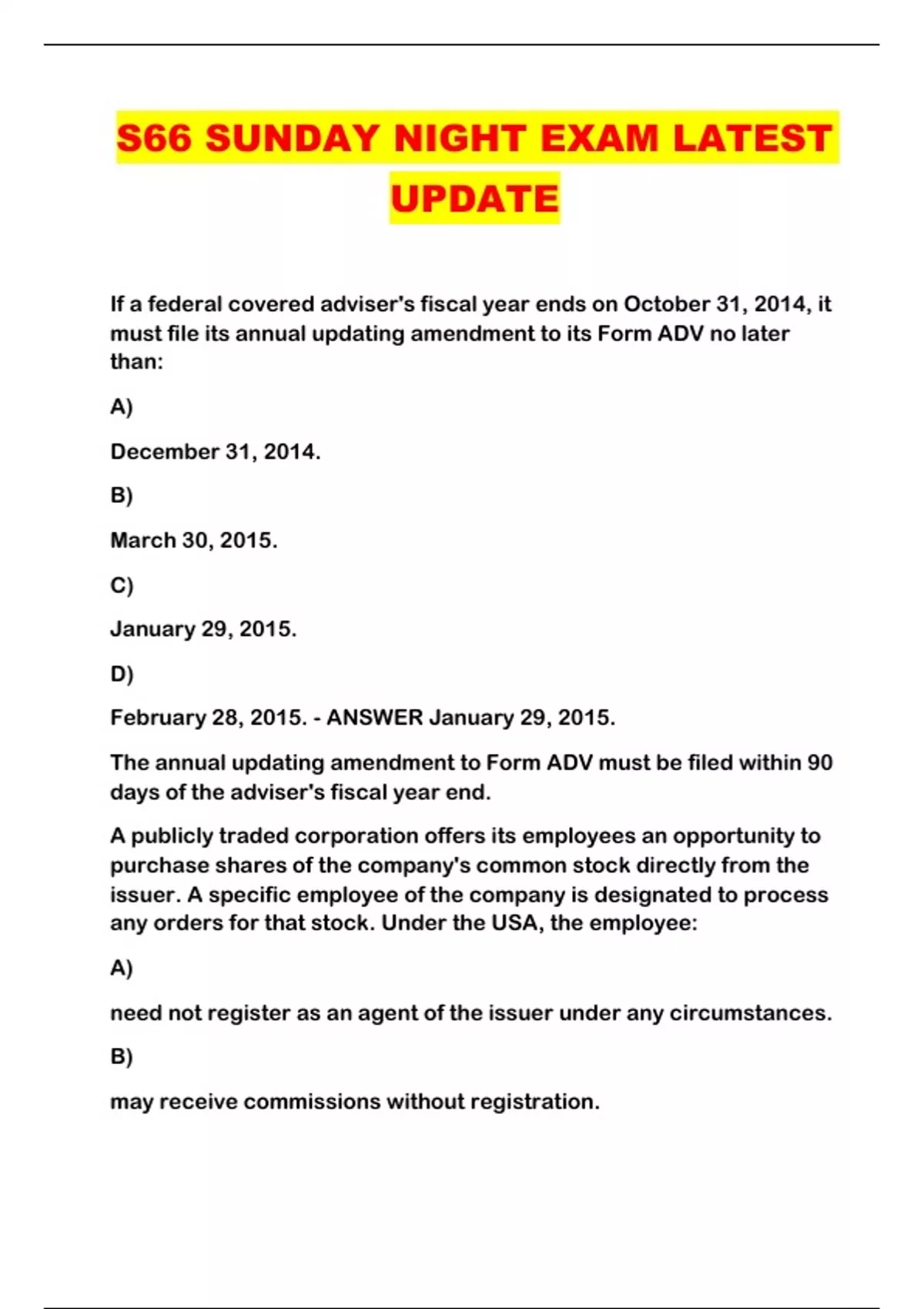 S66 SUNDAY NIGHT EXAM LATEST UPDATE