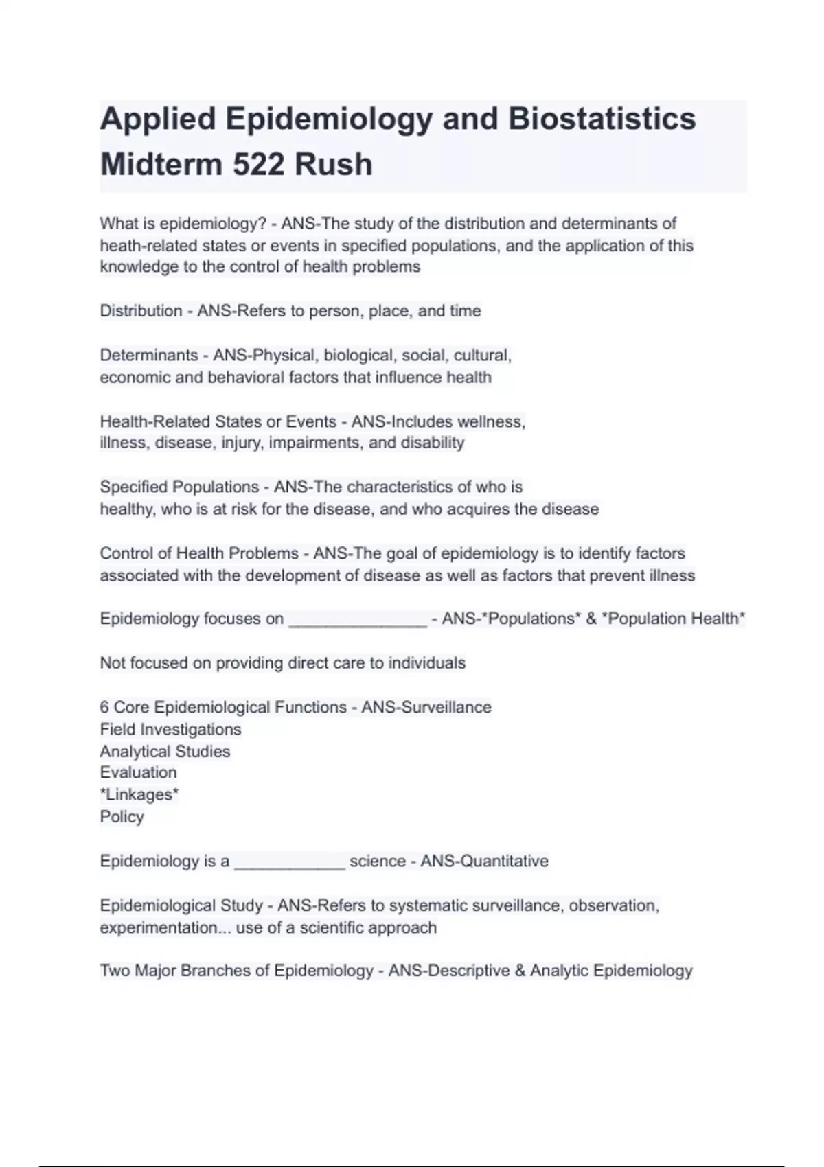 Epidemiology focuses on _______________ - ANS-*Populations* & *Population Health*