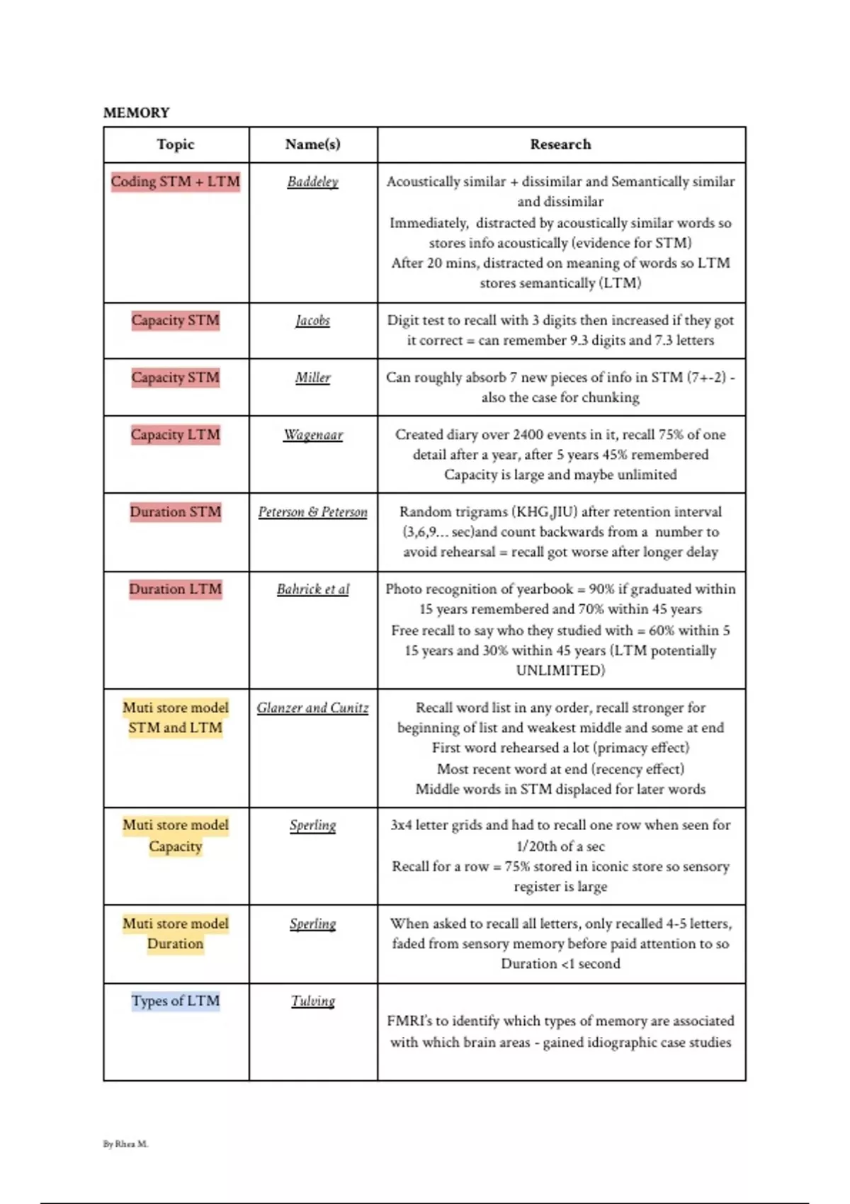 Coding STM + LTM Baddeley Acoustically similar + dissimilar and Semantically similar