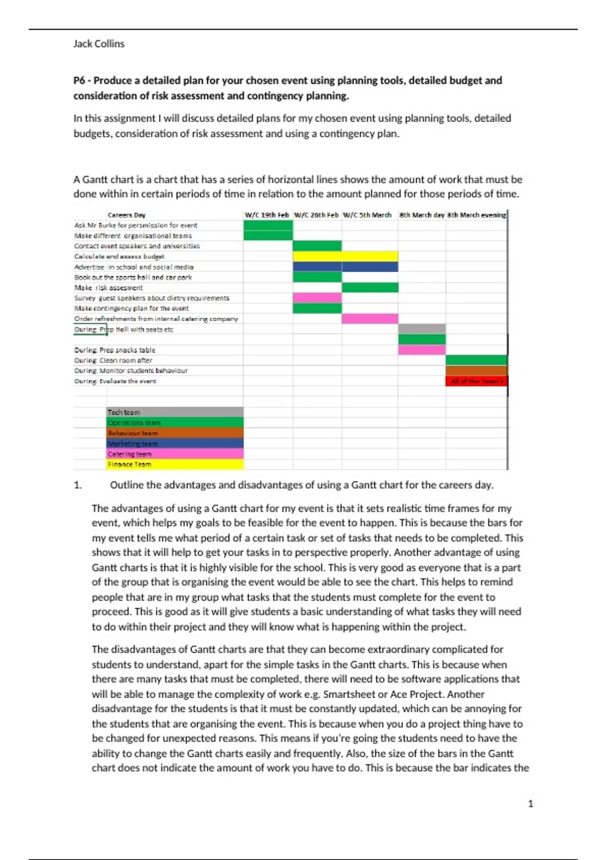 1. Outline the advantages and disadvantages of using a Gantt chart for the careers day.