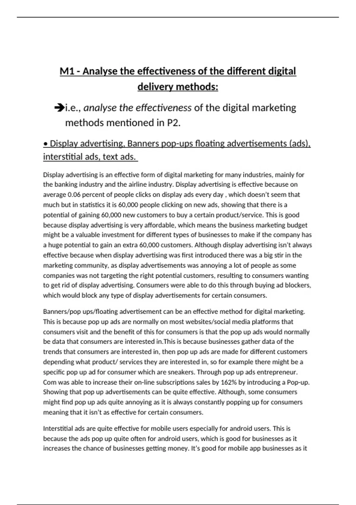 M1 - Analyse the effectiveness of the different digital