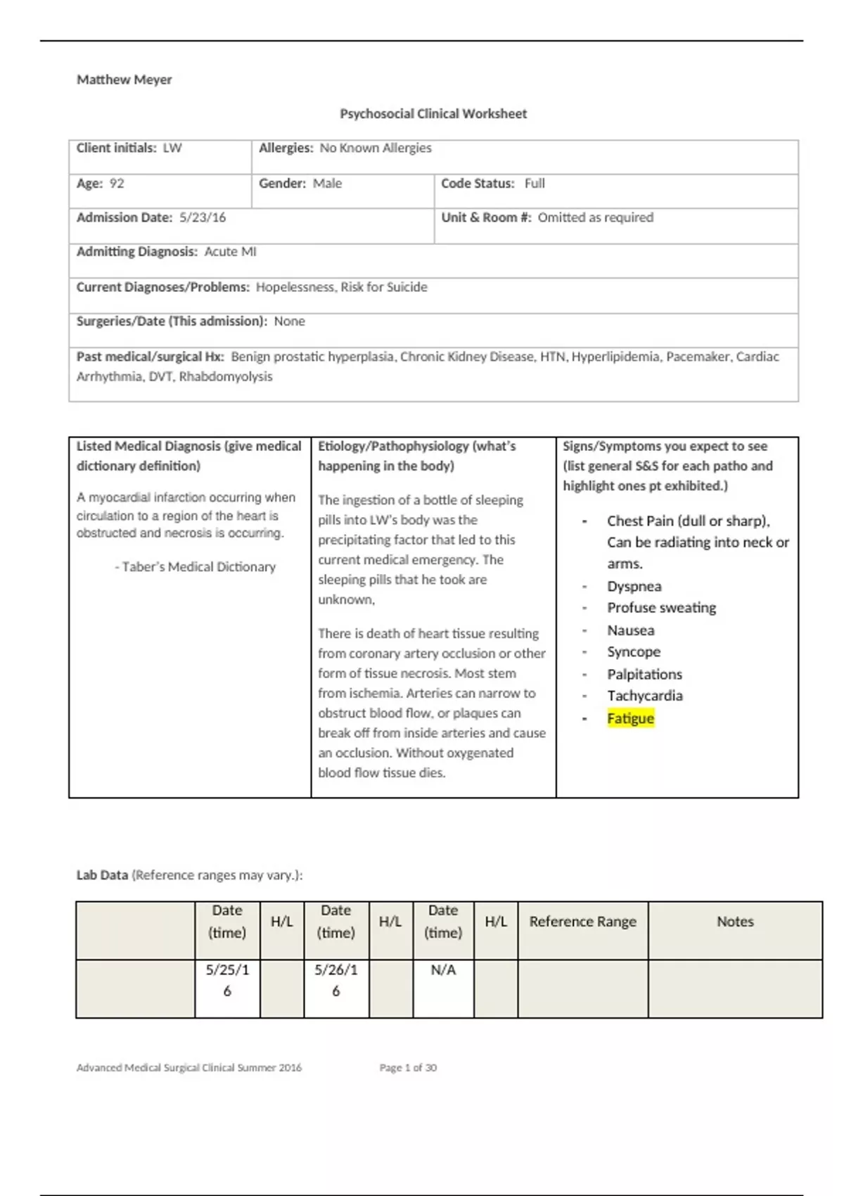 Advanced Medical Surgical Clinical Summer 2016 Page 1 of 30