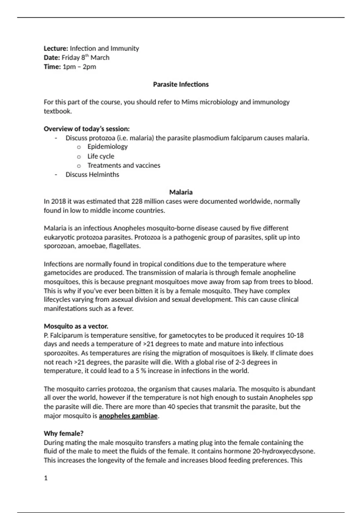 - Discuss protozoa (i.e. malaria) the parasite plasmodium falciparum causes malaria.