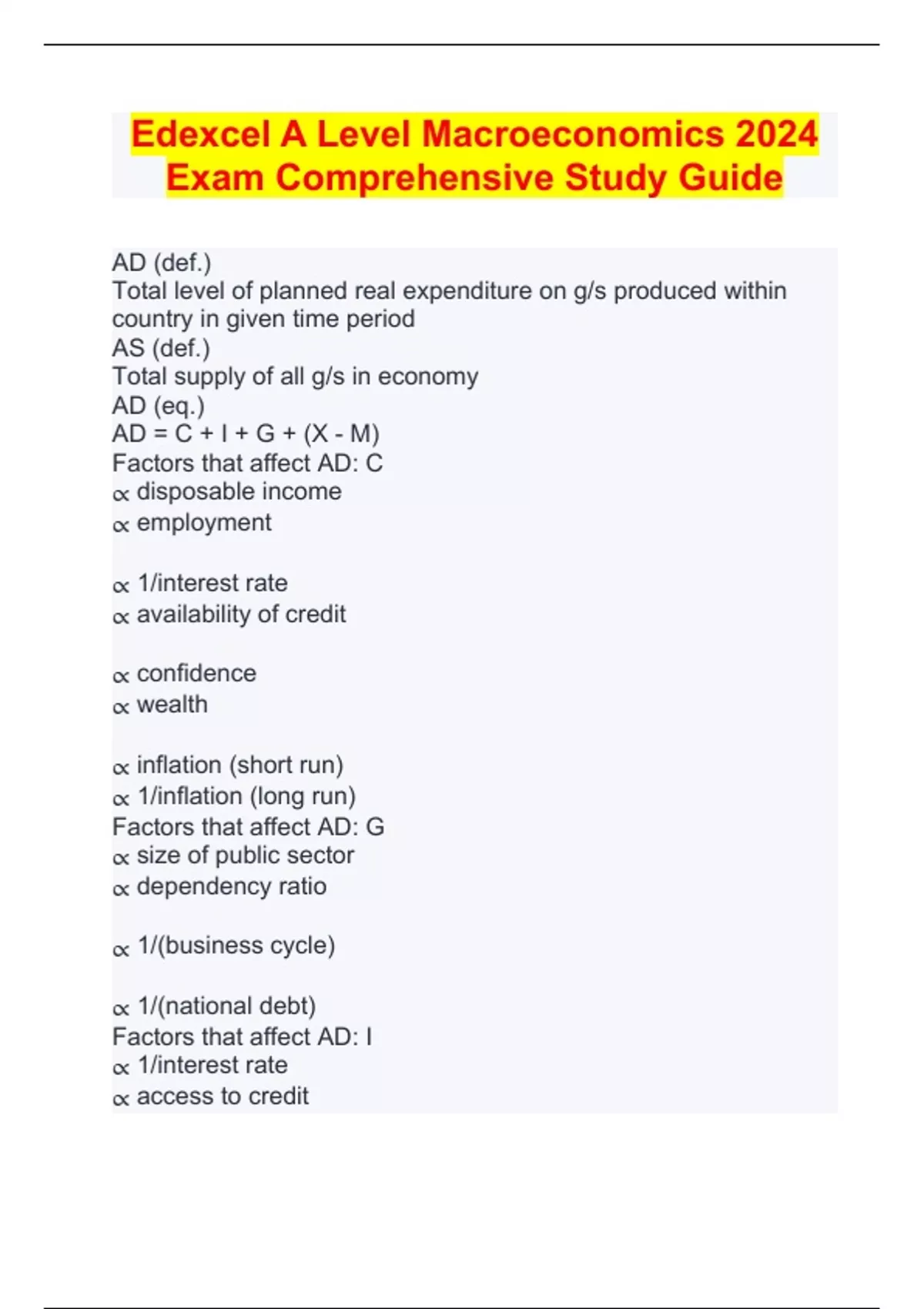 Edexcel A Level Macroeconomics 2024 Exam Comprehensive Study Guide