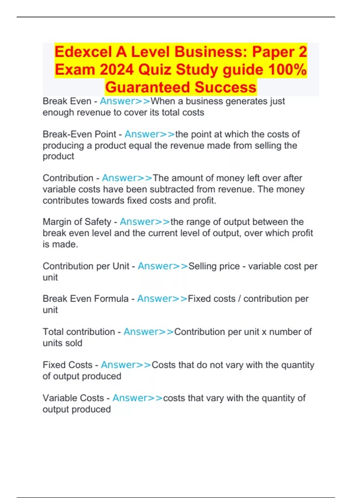 Break Even Formula - Answer>>Fixed costs / contribution per