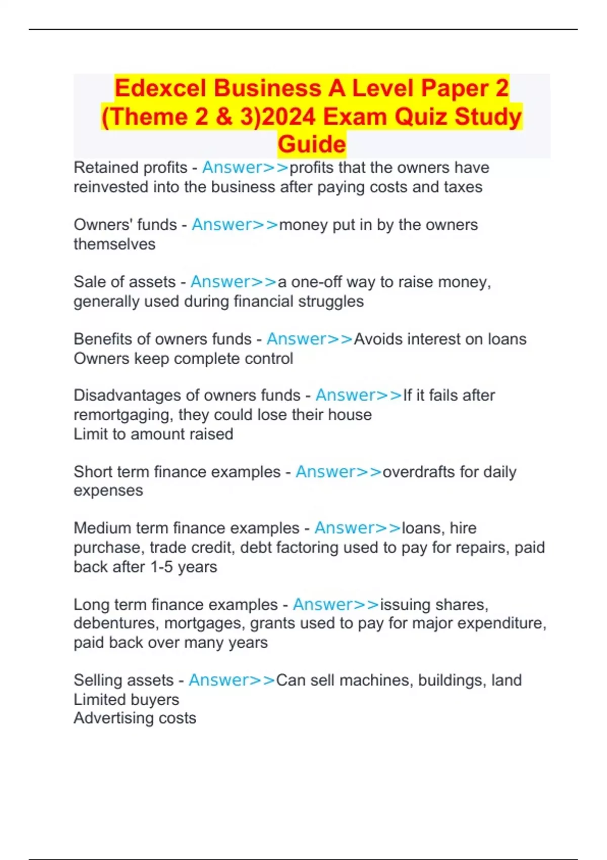 Disadvantages of owners funds - Answer>>If it fails after