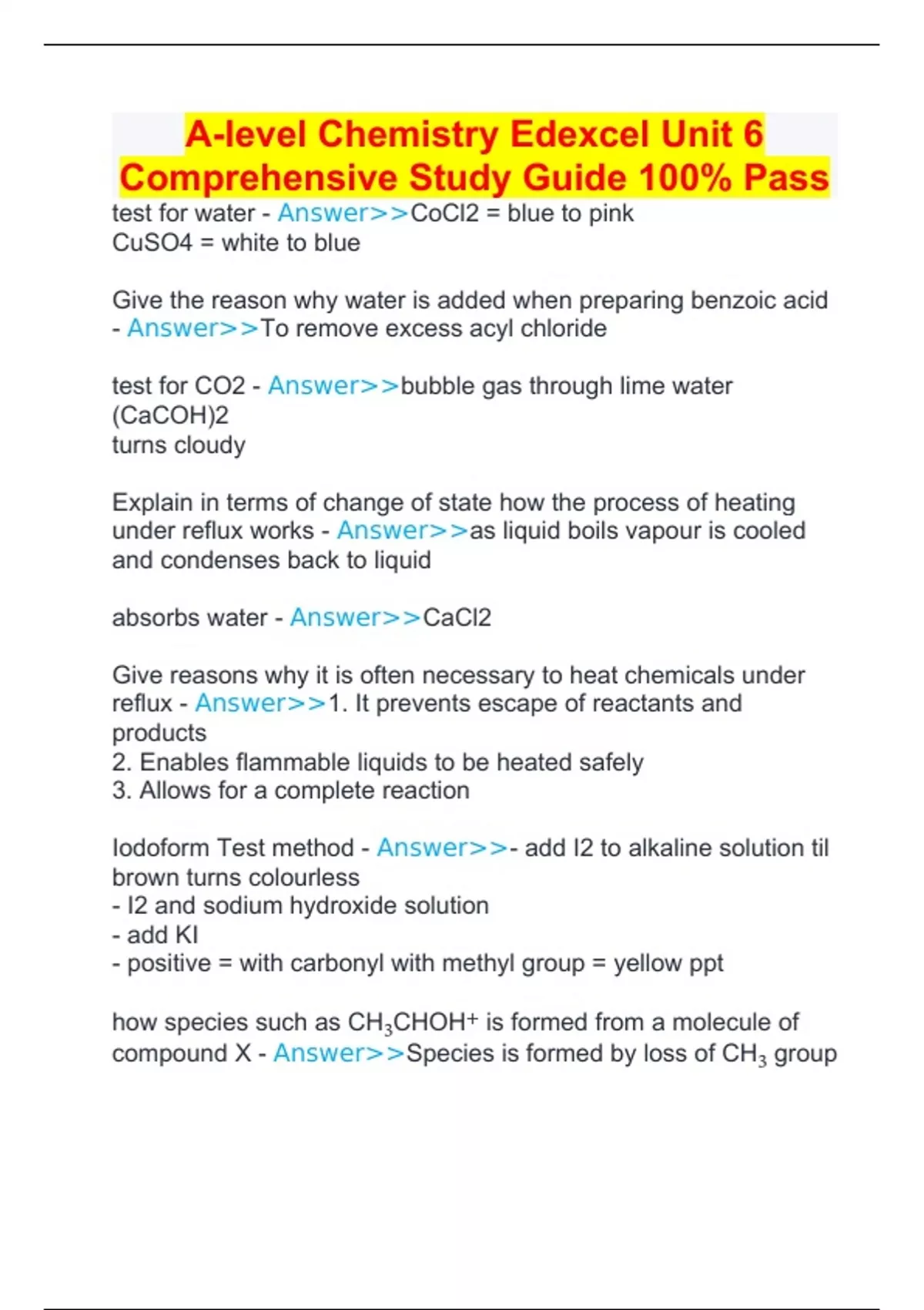 A-level Chemistry Edexcel Unit 6 Comprehensive Study Guide 100% Pass