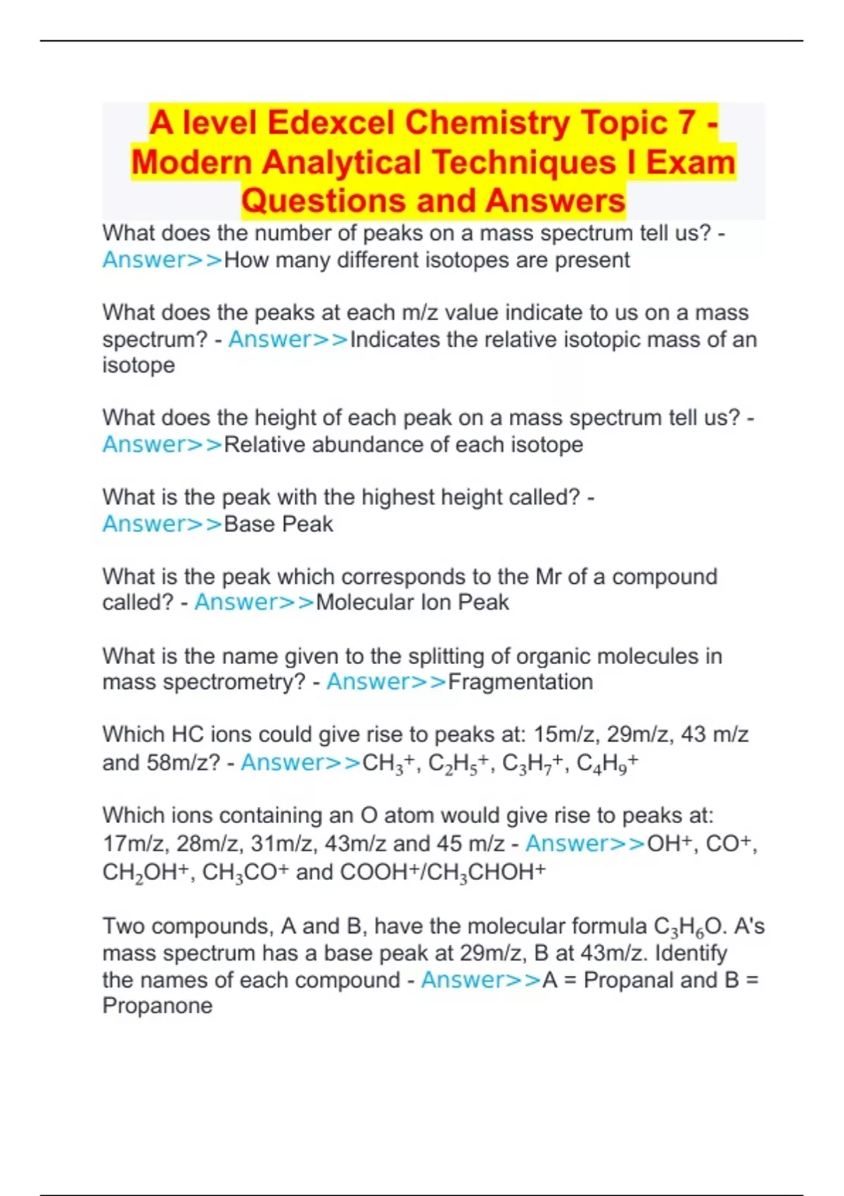 mass spectrum has a base peak at 29m/z, B at 43m/z. Identify