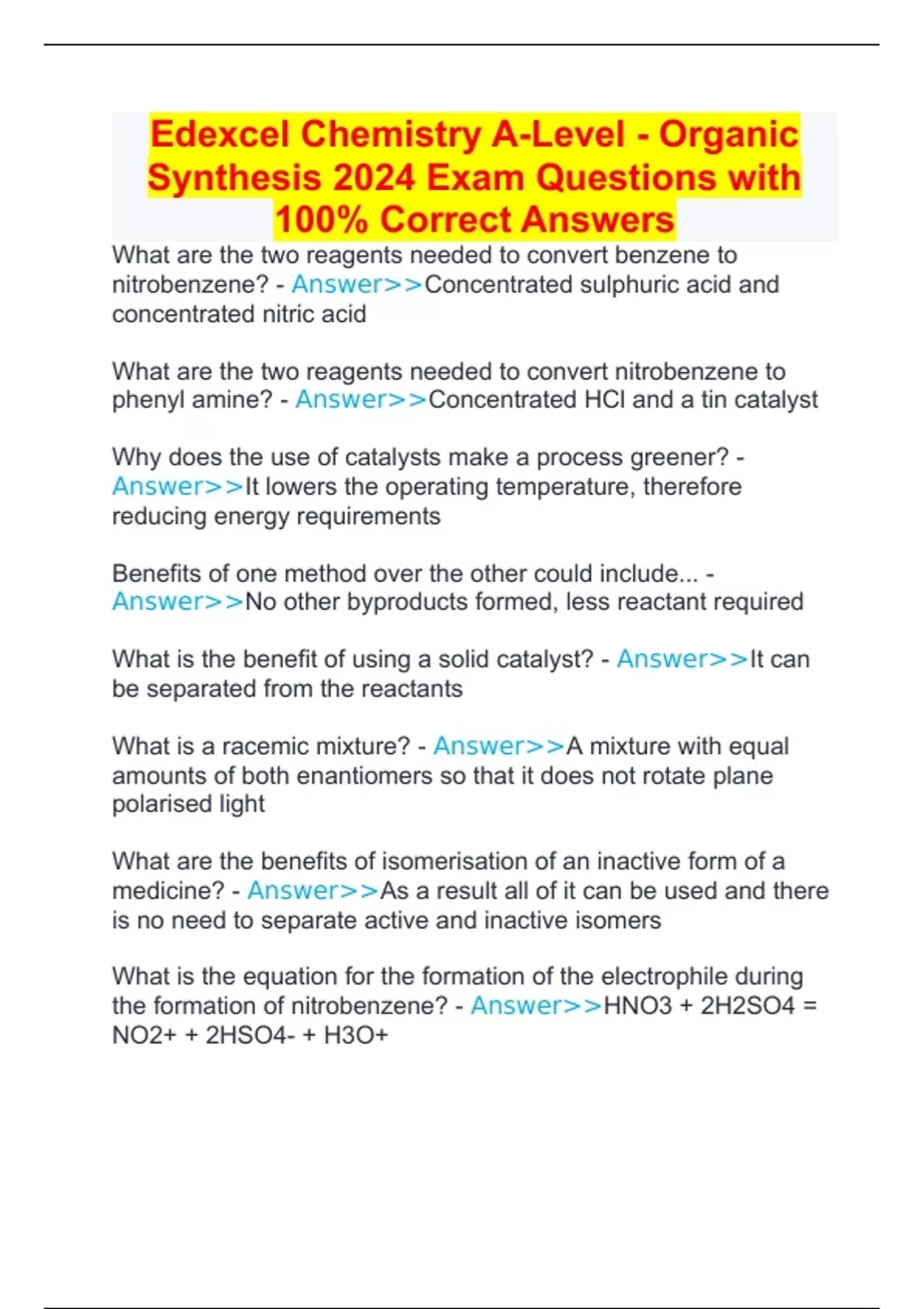 Synthesis 2024 Exam Questions with