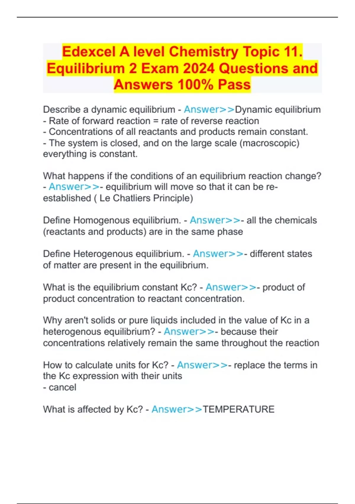 Define Homogenous equilibrium. - Answer>>- all the chemicals
