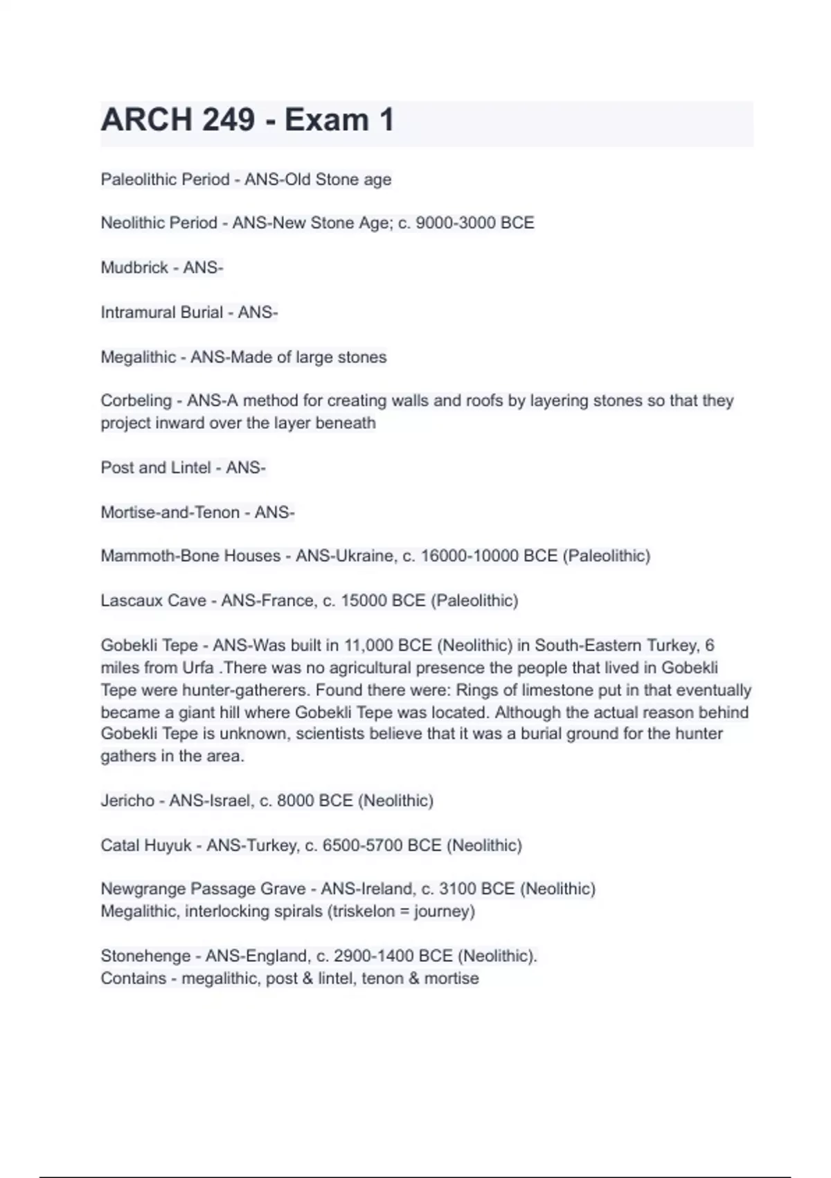 Neolithic Period - ANS-New Stone Age; c. 9000-3000 BCE