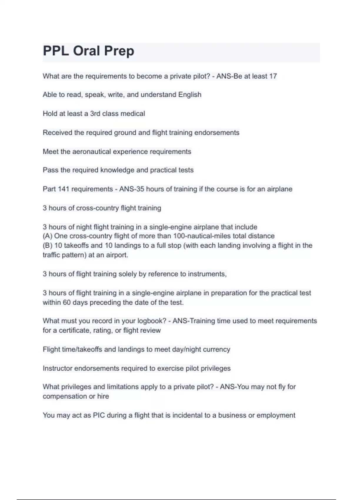 PPL Oral Prep