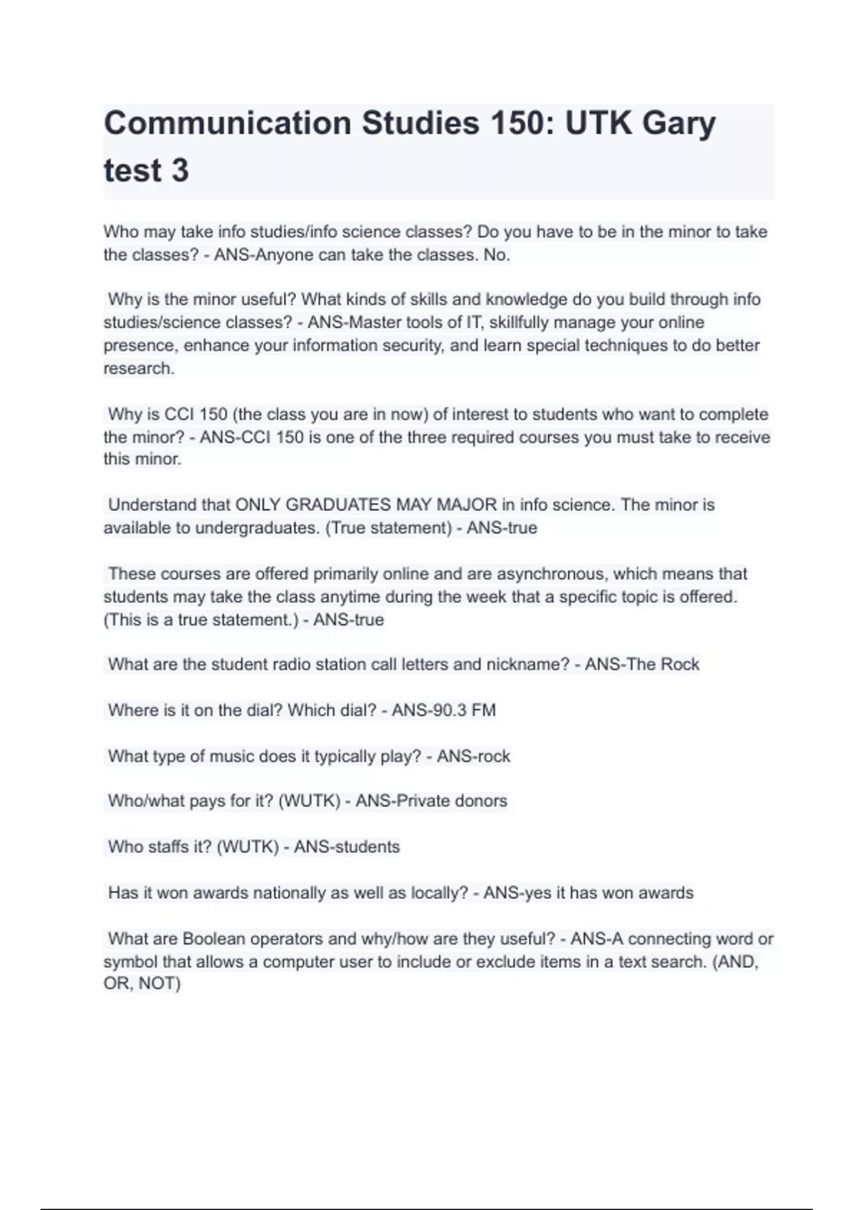 Communication Studies 150: UTK Gary