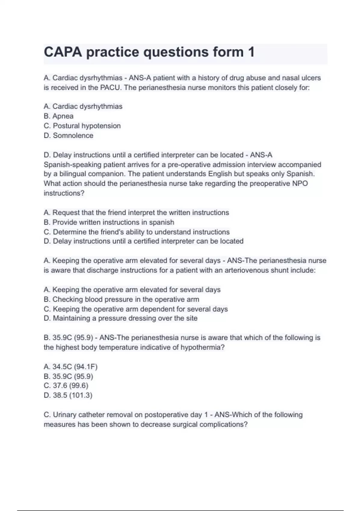 CAPA practice questions form 1