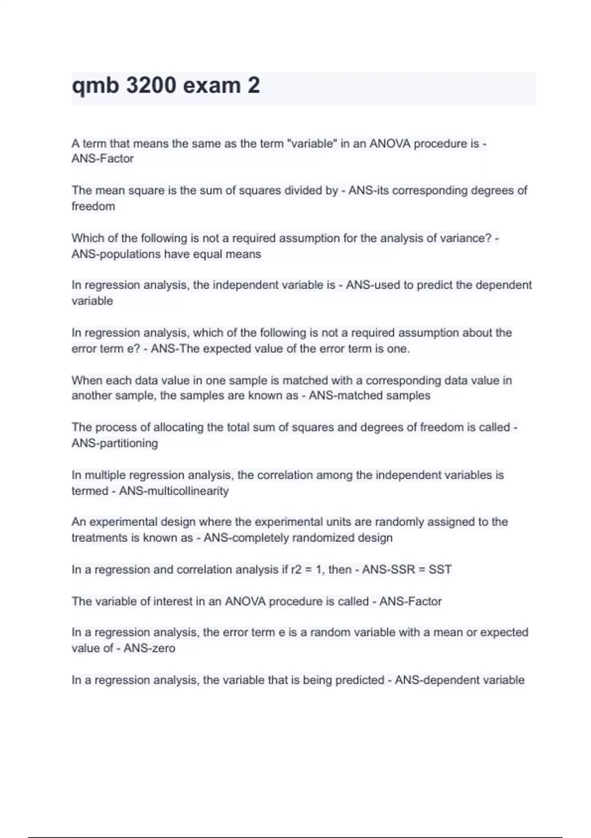 Exam of 2 pages for the course exam 1 qmb 3200 - Gary Bliss/ Ansel Diama at exam 1 qmb 3200 - Gary Bliss/ Ansel Diama (qmb 3200 exam 2)