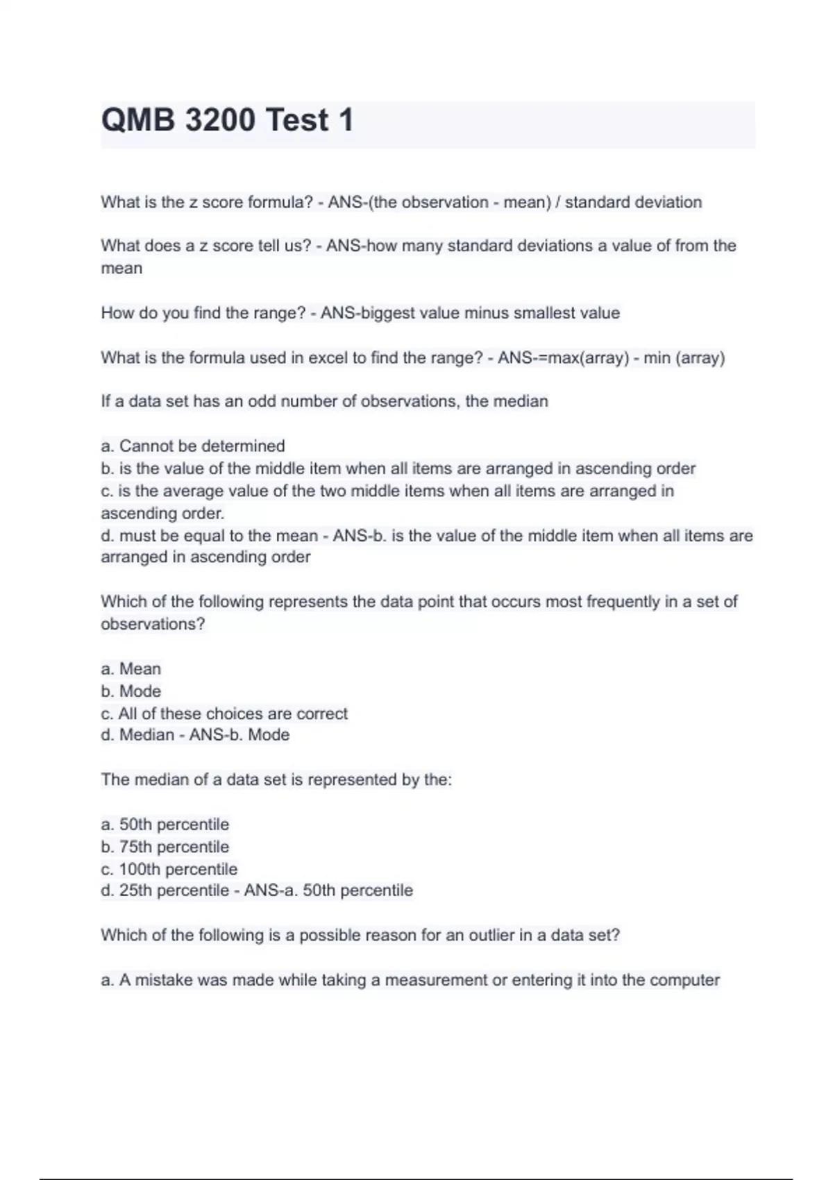 Exam of 10 pages for the course exam 1 qmb 3200 - Gary Bliss/ Ansel Diama at exam 1 qmb 3200 - Gary Bliss/ Ansel Diama (QMB 3200 Test 1)