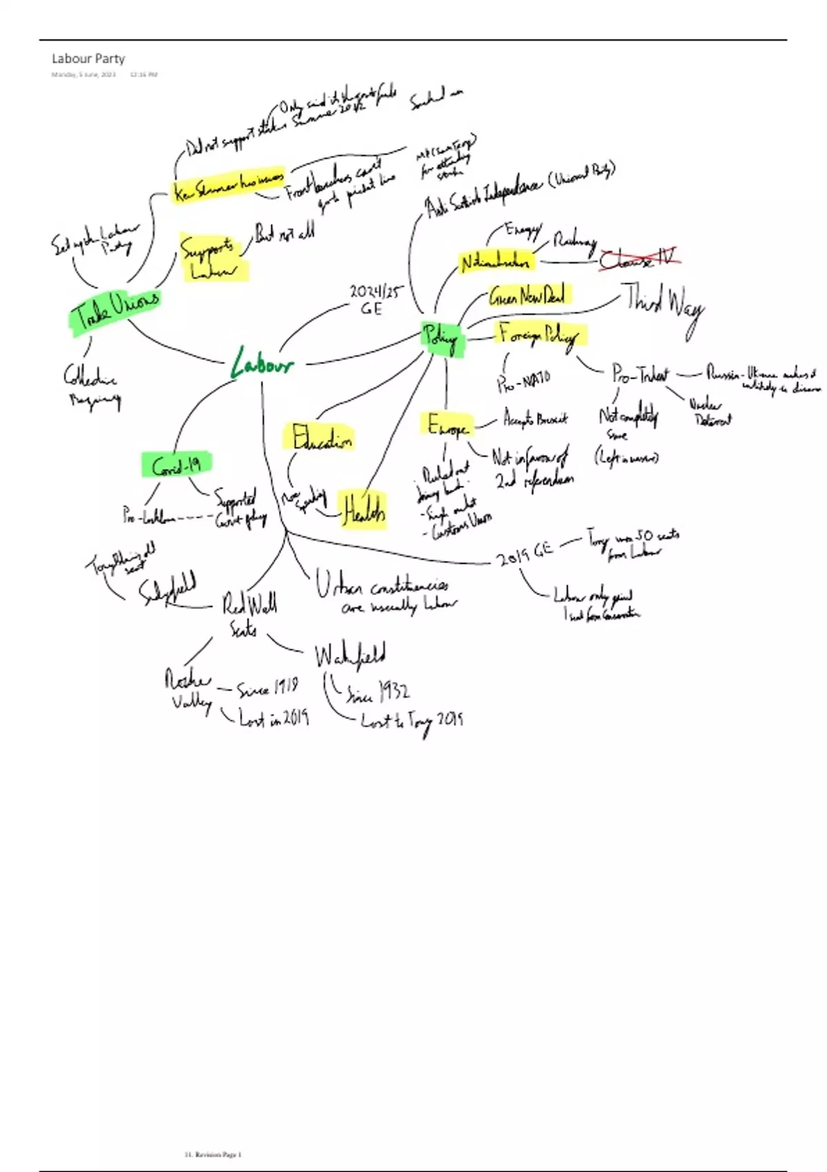 A mindmap which looks into the policies and beliefs of the Labour Party. Summary notes which look at the main areas of policy.