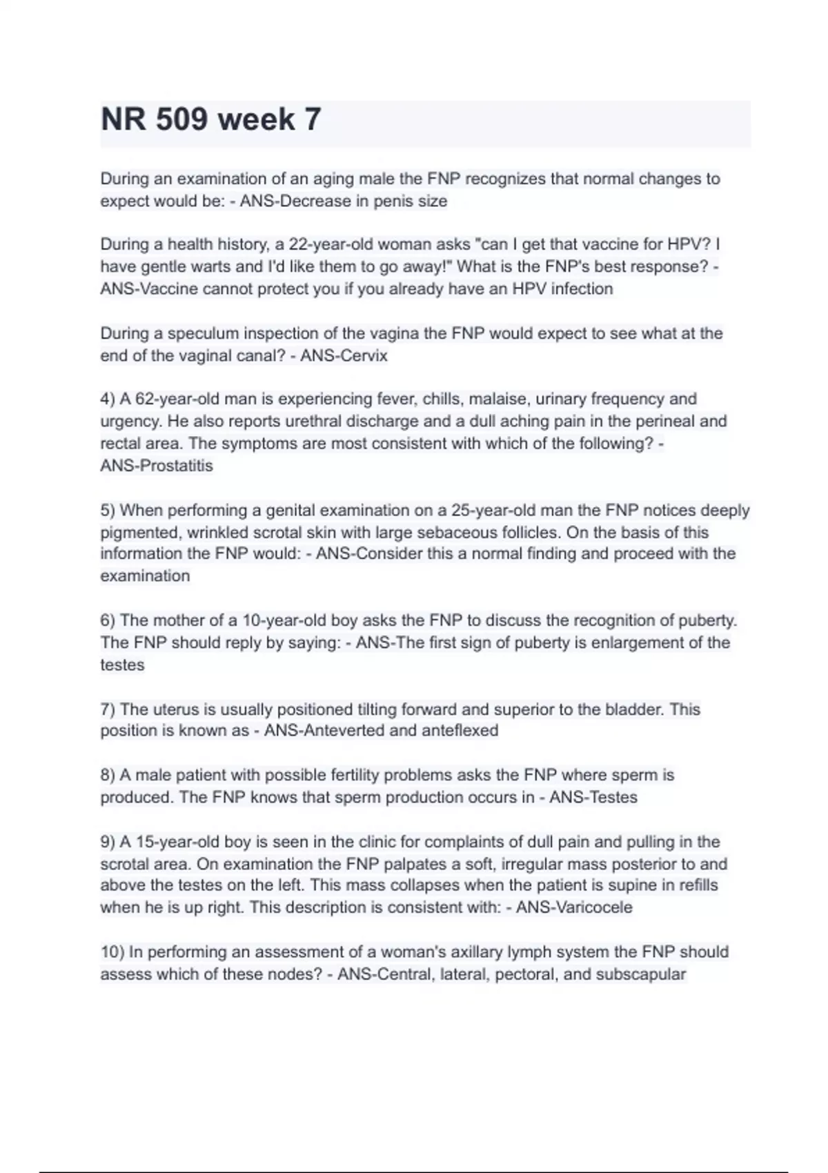 Exam of 3 pages for the course NR 509 Advanced Assessment at NR 509 Advanced Assessment (NR 509 week 7.)