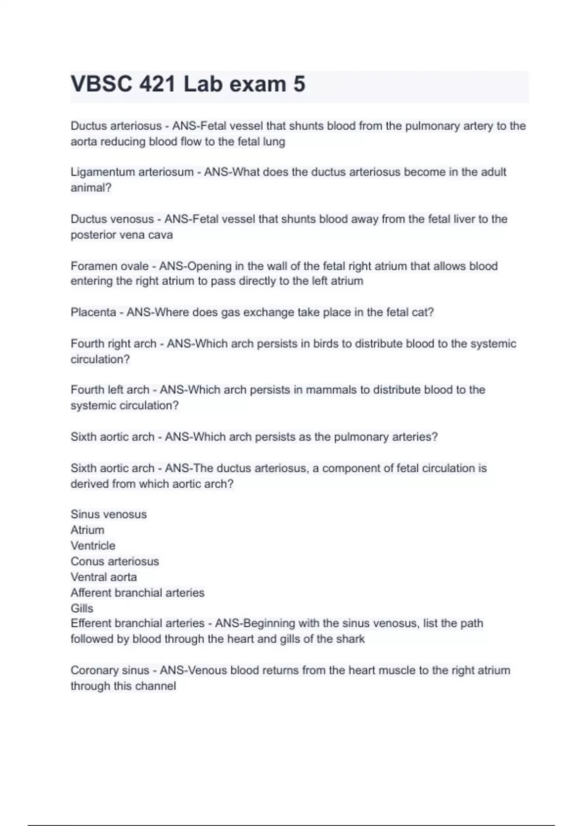 Ductus arteriosus - ANS-Fetal vessel that shunts blood from the pulmonary artery to the