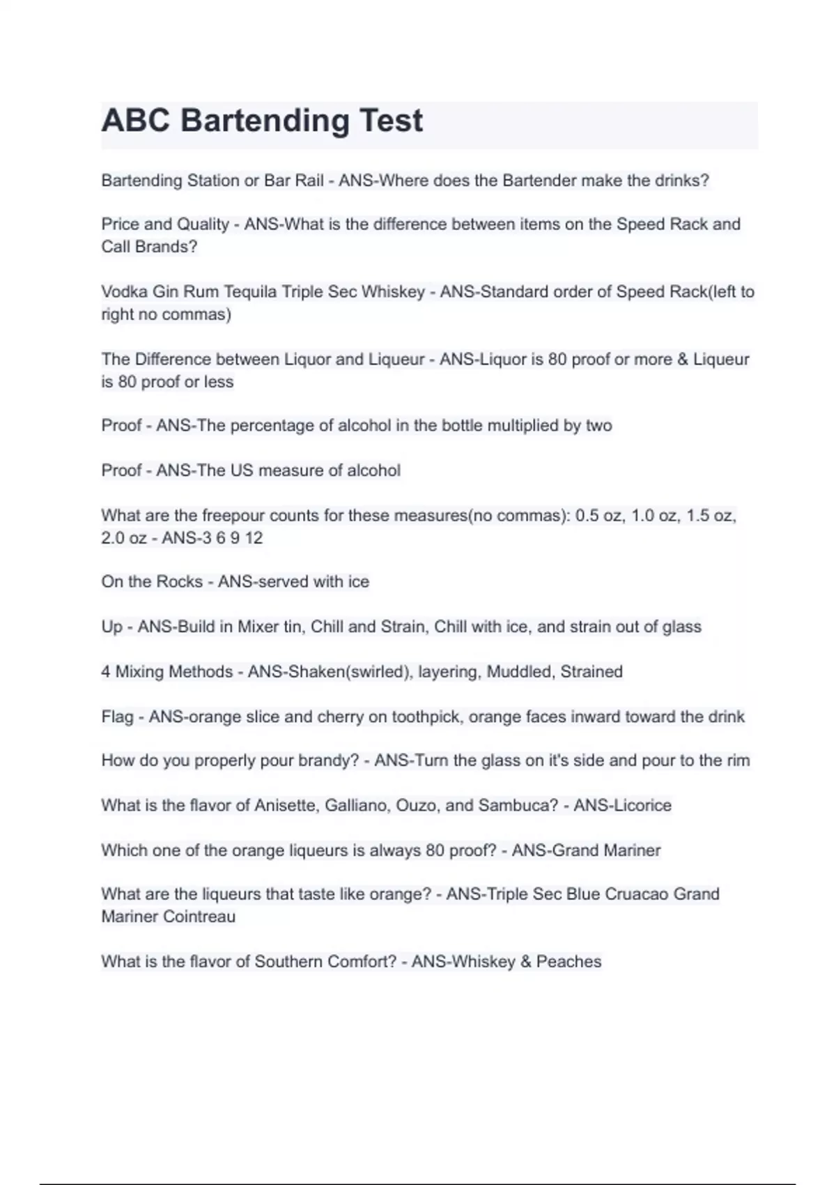 ABC Bartending Test