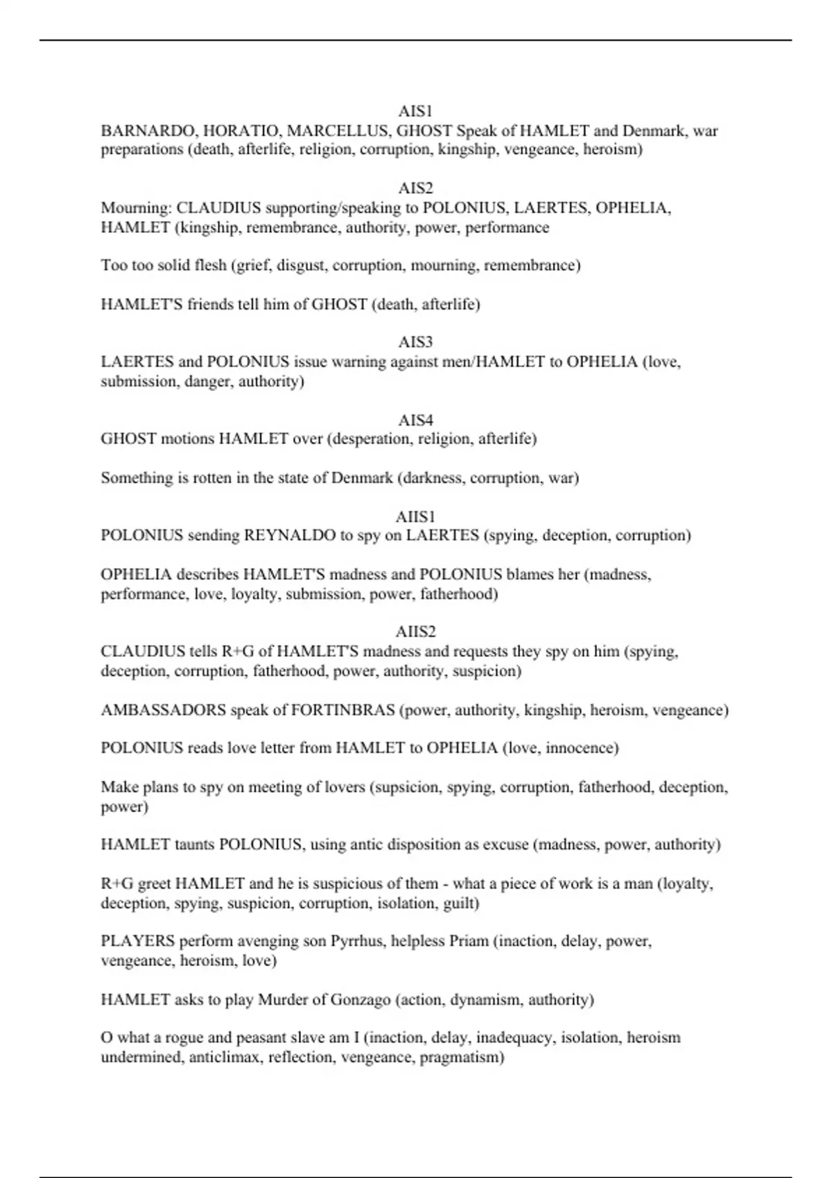 HAMLET directs PLAYERS on performance (spying, suspicion, vengeance, inaction, delay,