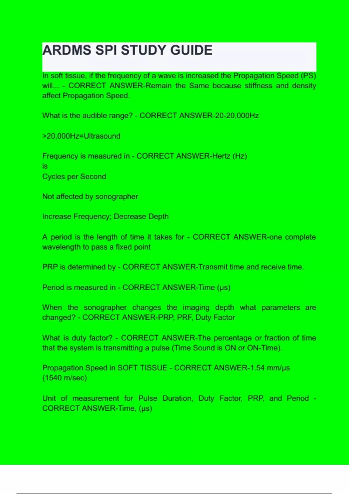 Spatial Pulse Length is directly proportional to - CORRECT ANSWER-the