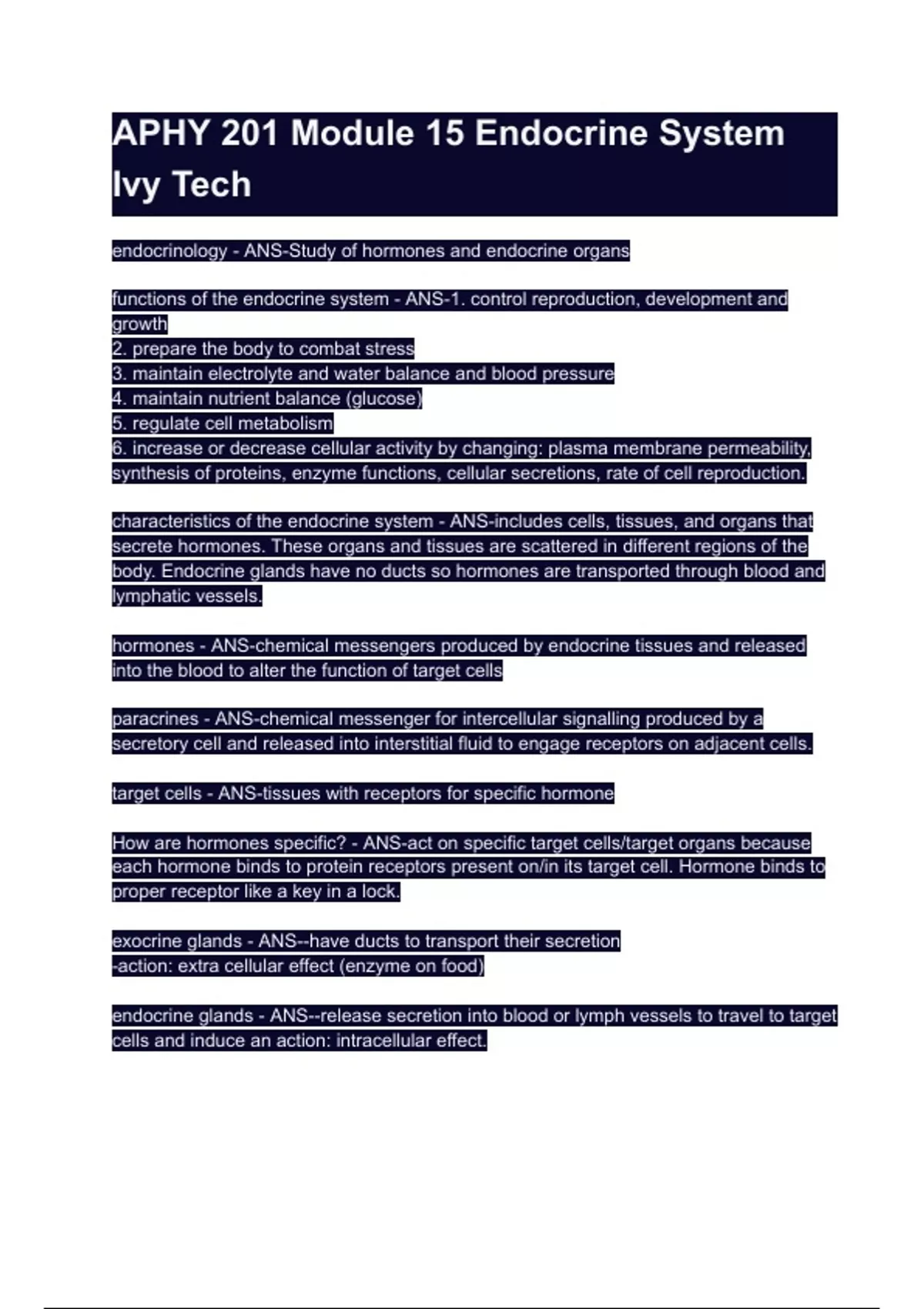 How are hormones specific? - ANS-act on specific target cells/target organs because