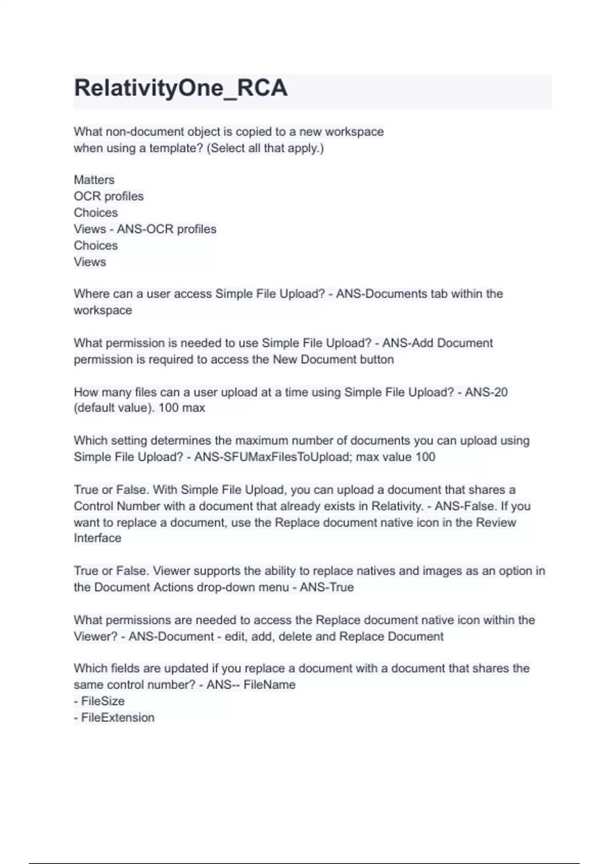 RelativityOne RCA Questions with 100% correct answers | verified | latest update 2024