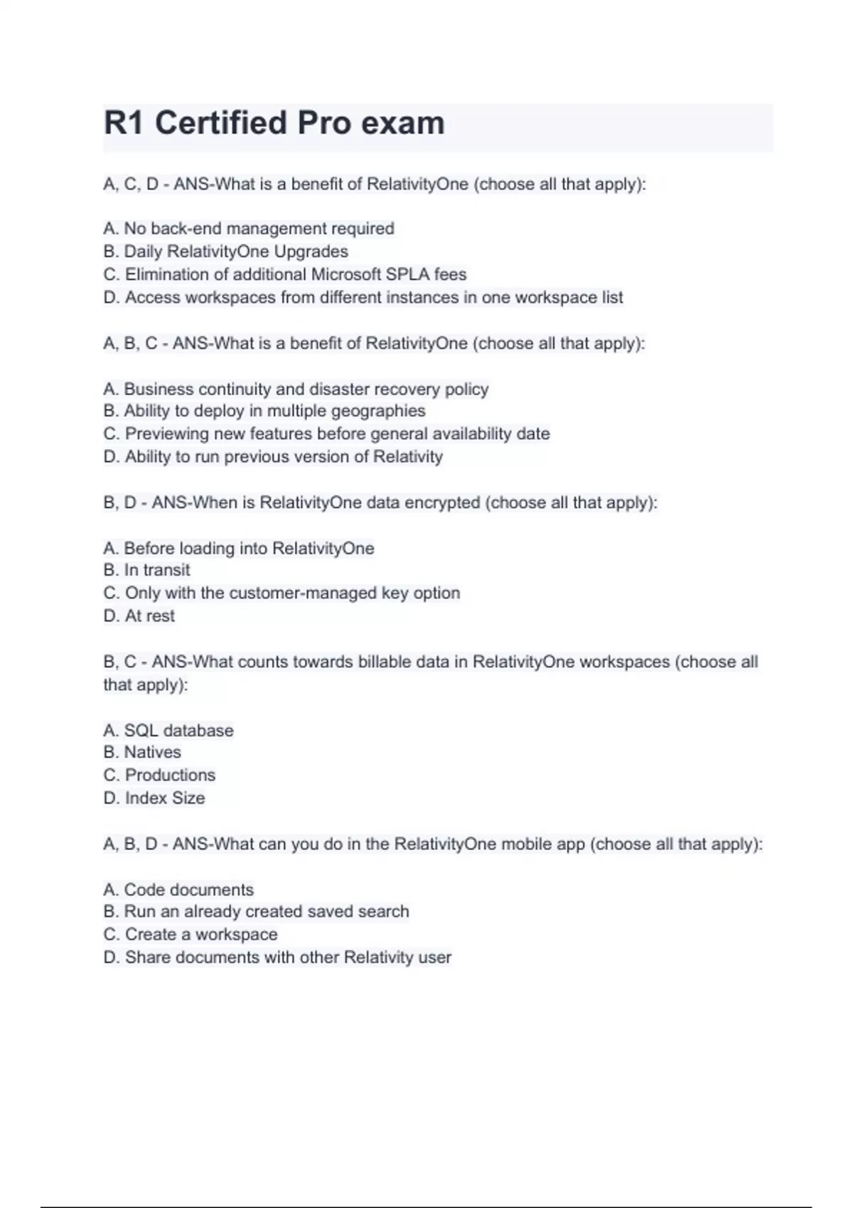 A, B, C - ANS-What is a benefit of RelativityOne (choose all that apply):