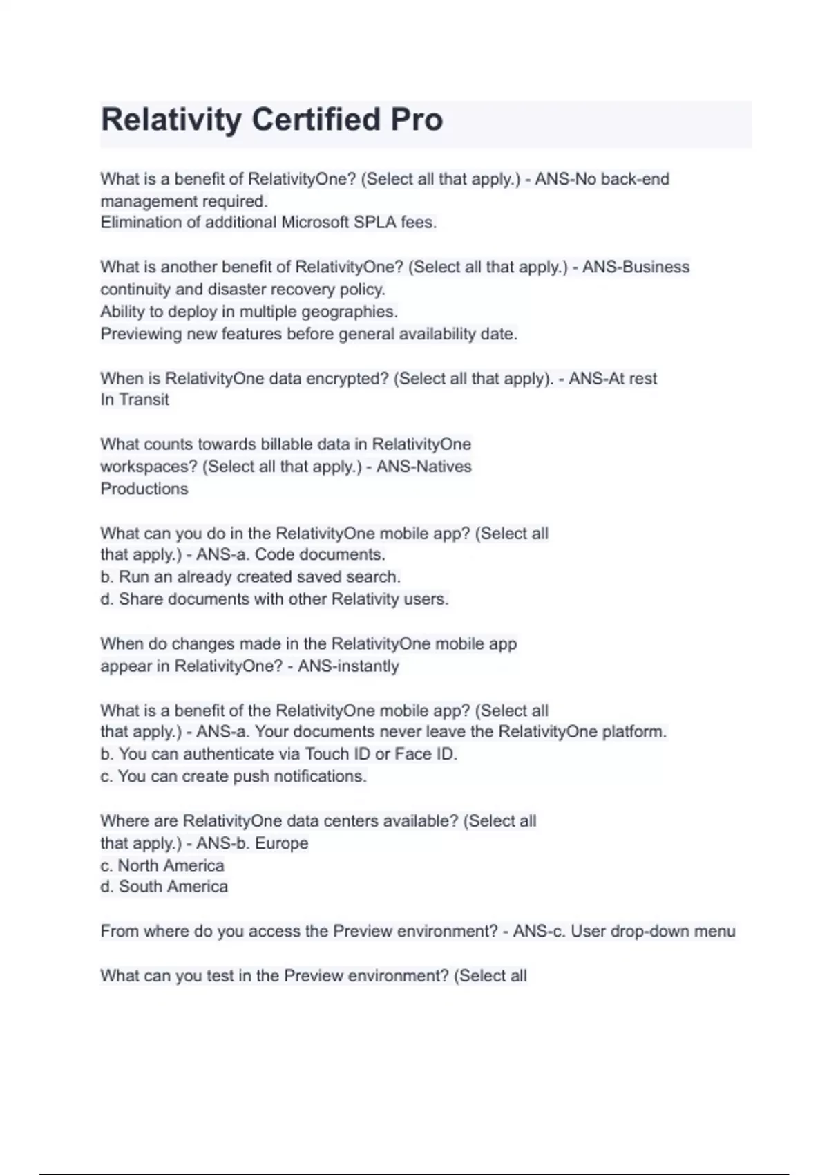 Relativity Certified Pro Questions with 100% correct answers | verified | latest update 2024