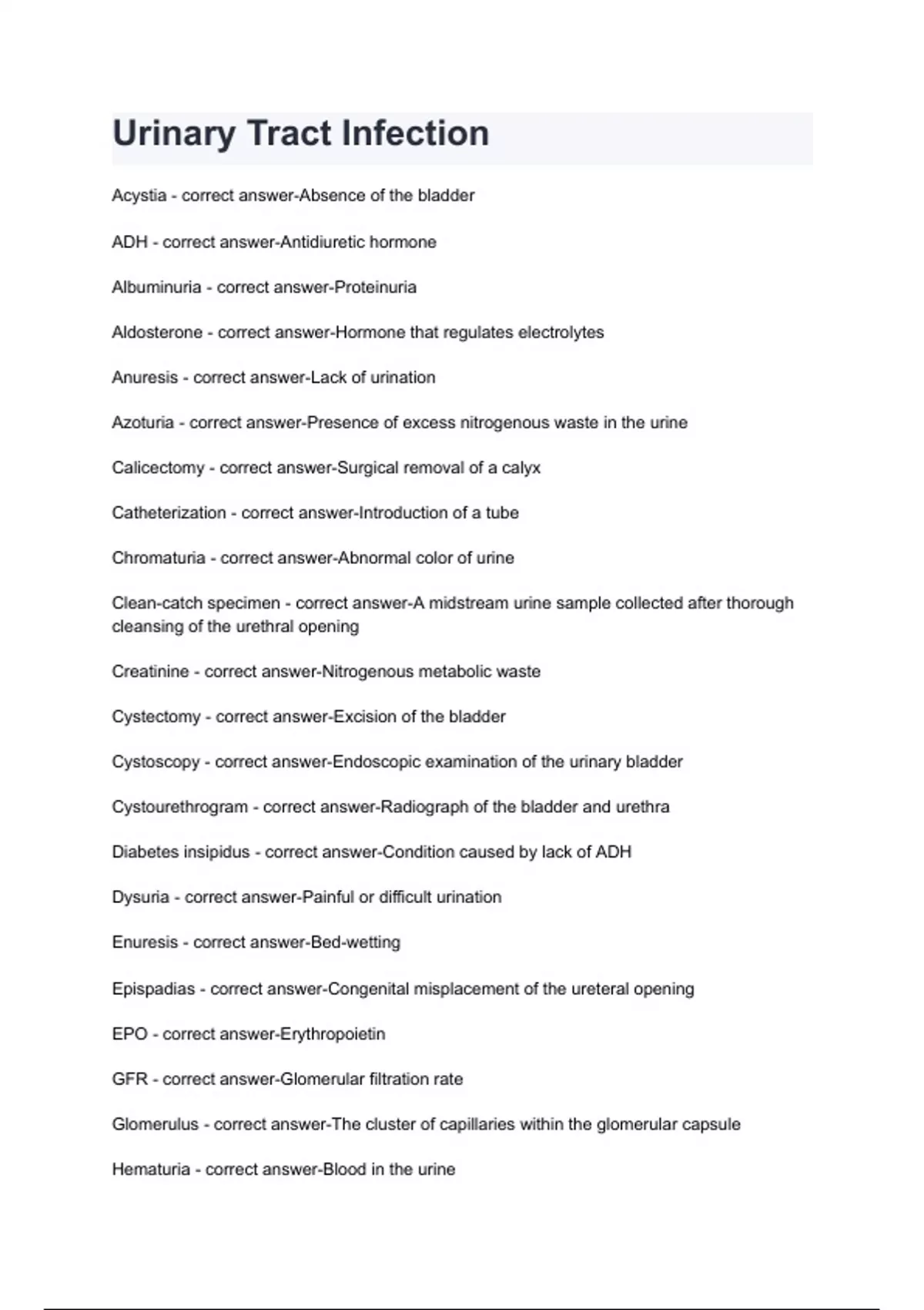 Dysuria - correct answer-Painful or difficult urination