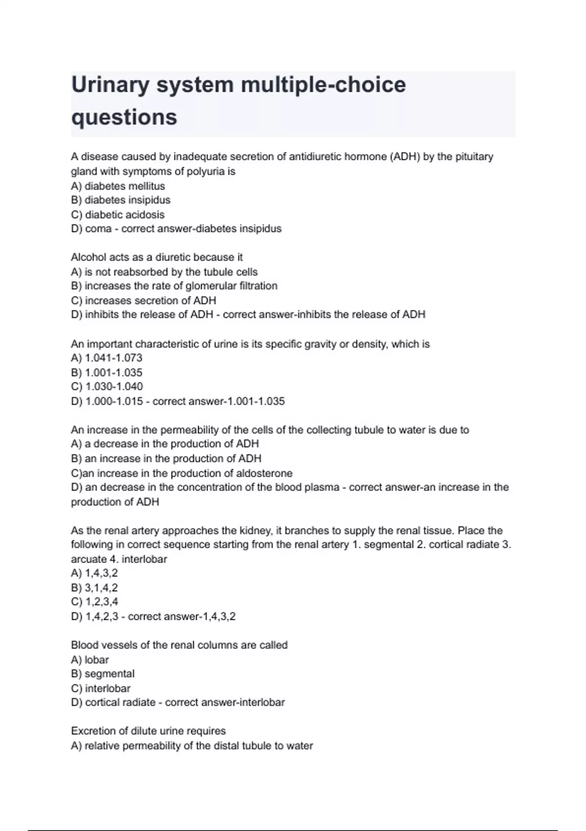 D) the presence of ADH - correct answer-impermeability of the collecting tubule to water