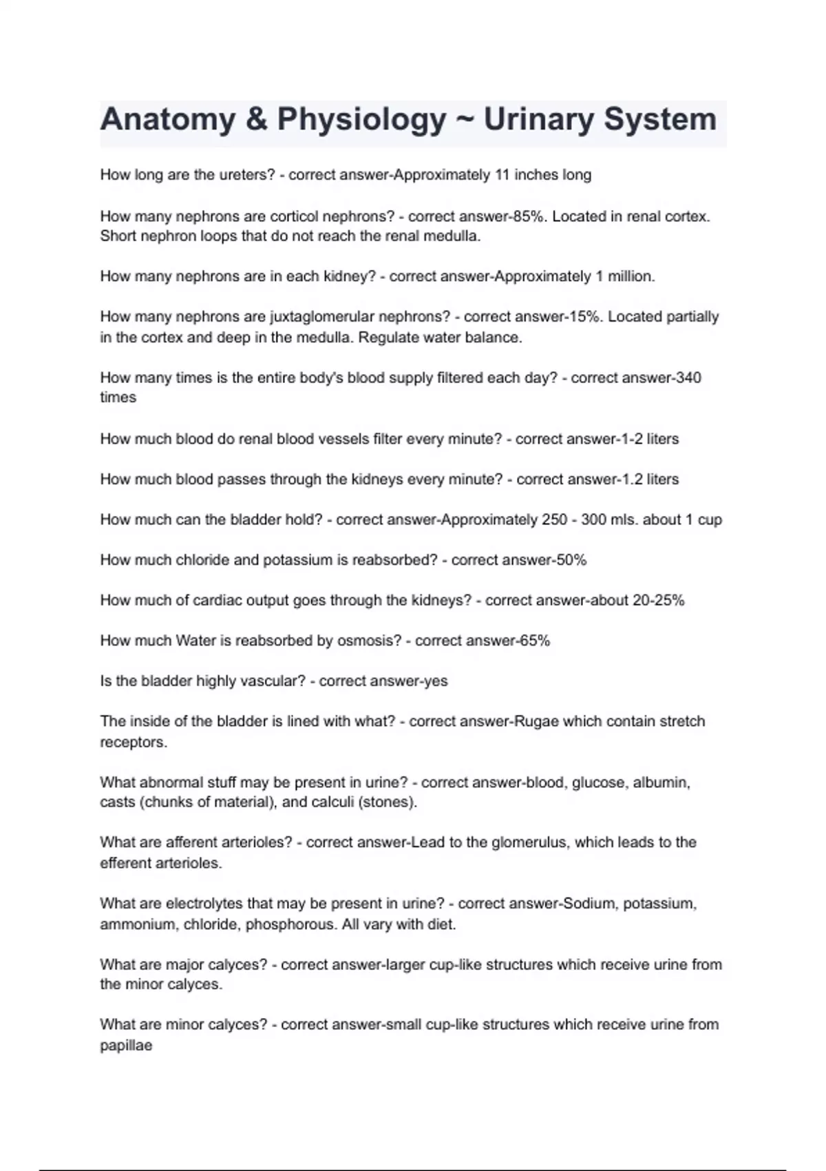 How many nephrons are in each kidney? - correct answer-Approximately 1 million.