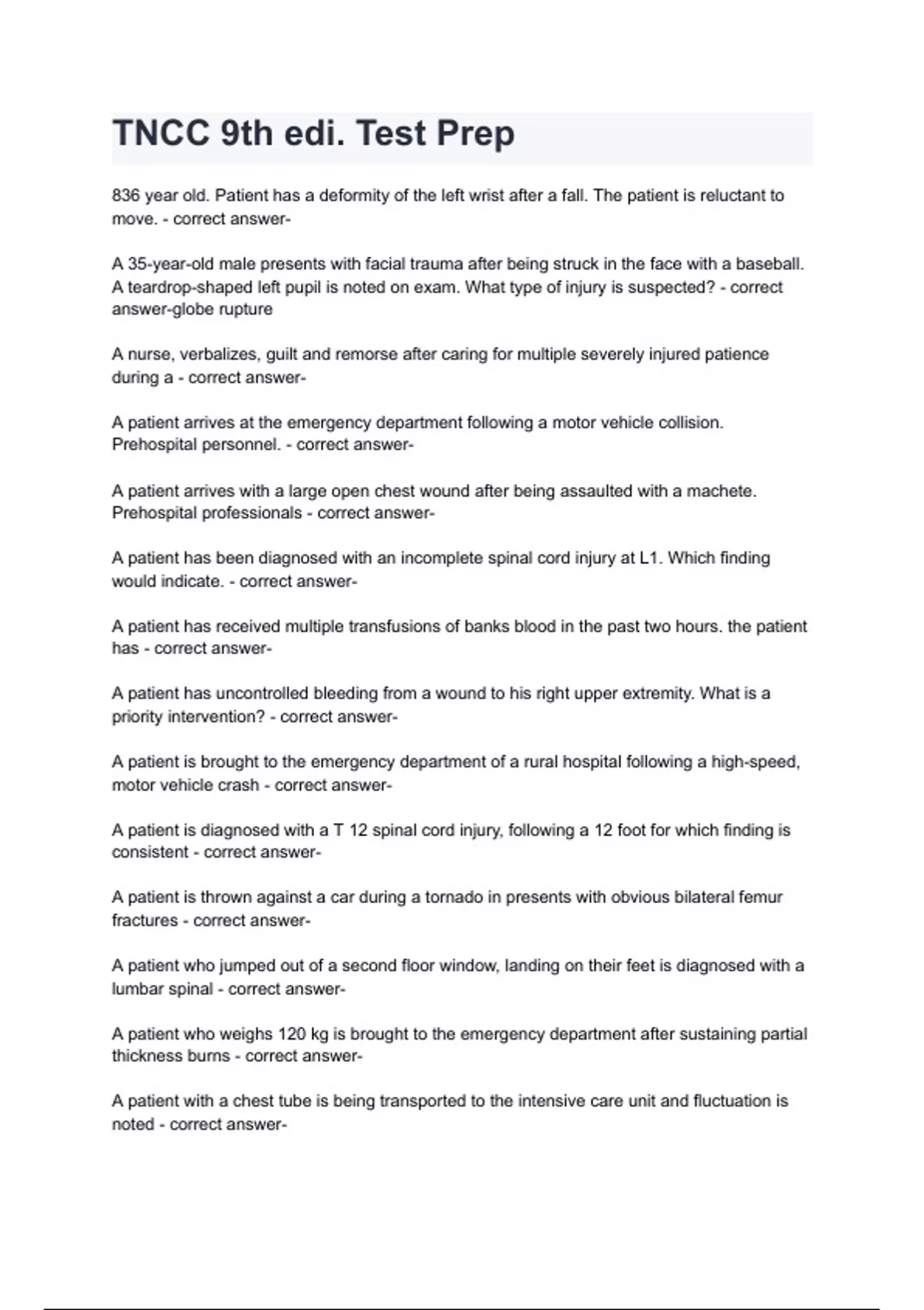 A patient arrives at the emergency department following a motor vehicle collision.