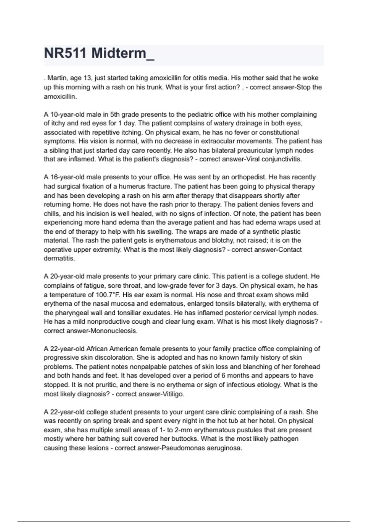 NR511 Midterm Questions with 100% Actual correct answers | verified | latest update | Graded A+ | Already Passed | Complete Solution