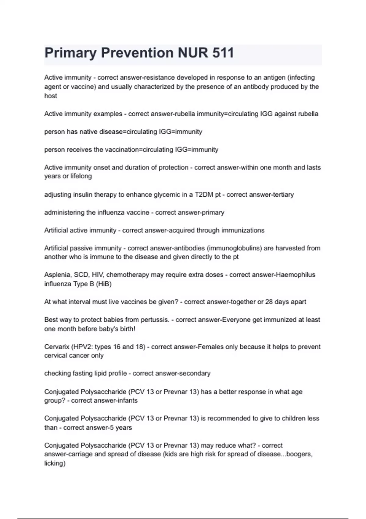 Primary Prevention NUR 511 Questions with 100% Actual correct answers | verified | latest update | Graded A+ | Already Passed | Complete Solution