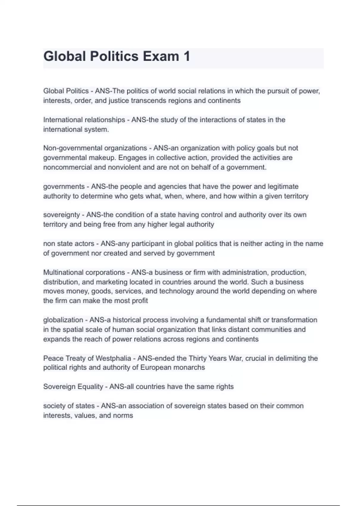 Global Politics - ANS-The politics of world social relations in which the pursuit of power,