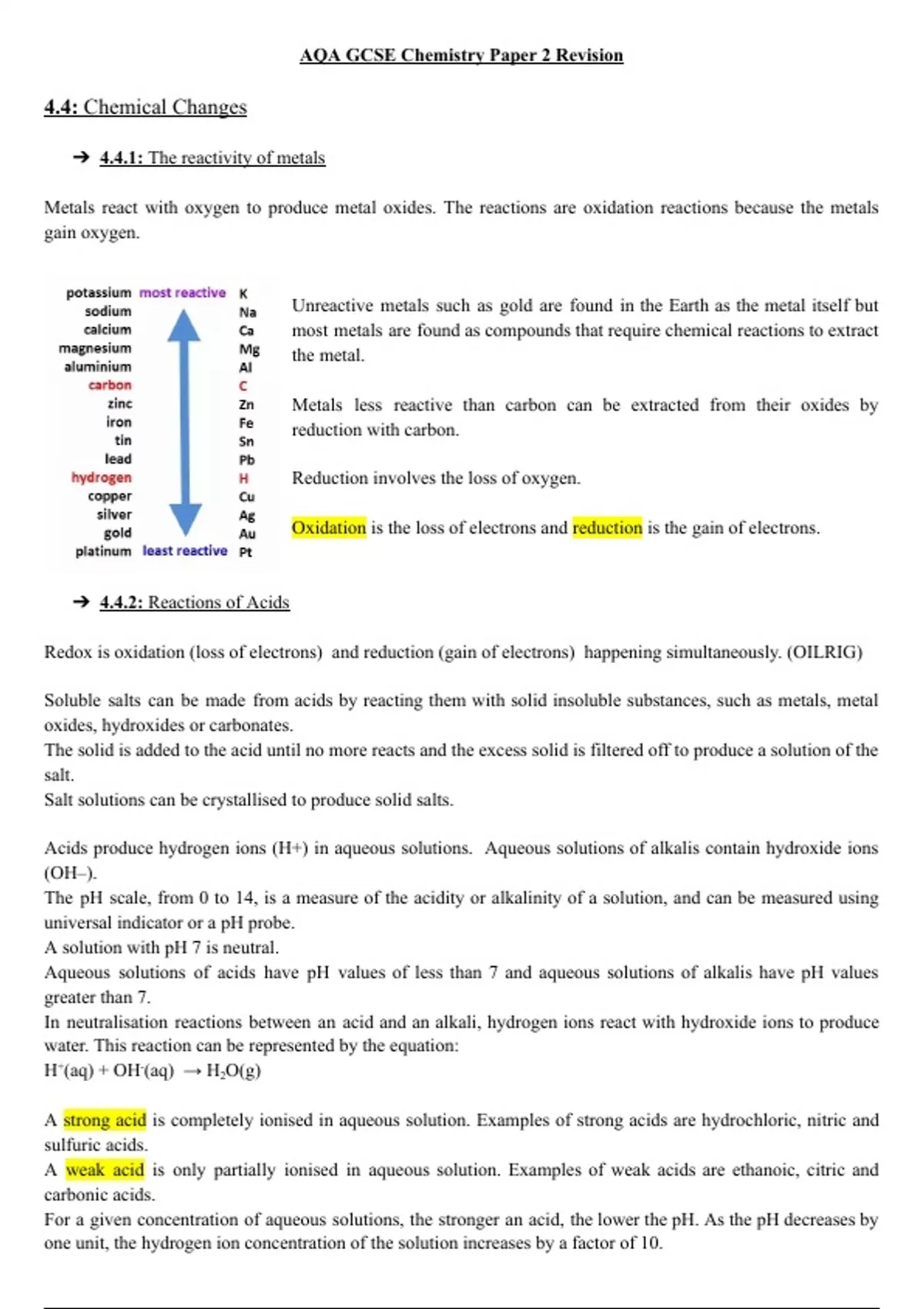 ➔ 4.4.1: The reactivity of metals